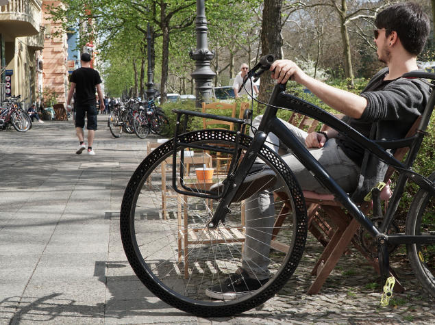 Almanya merkezli uluslararası şirket BigRep, BigRep ONE adlı dünyanın ilk 3B baskılı, tam ölçekli havasız bisiklet lastiğini tasarladı.