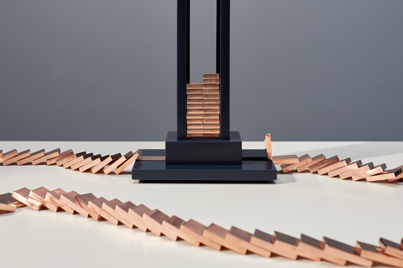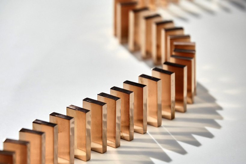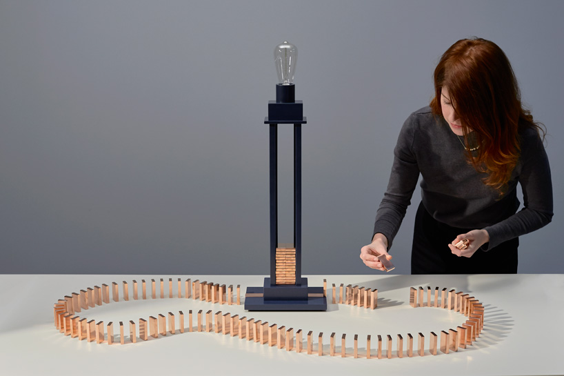 Londra merkezli stüdyo Glithero, iletken bakır domino taşları kullanarak açılabilen bir masa lambası Domino Light’ı tasarladı. Taşlar lamba tabanından başlayıp bittiği sürece, herhangi bir konfigürasyonda kolay bir şekilde düzenlenebilir, alanlar, düştükleri anda bir elektrik devresini tamamlarlar ve bu da ışığı yakar.