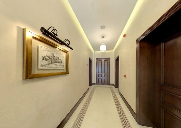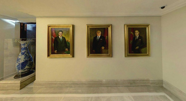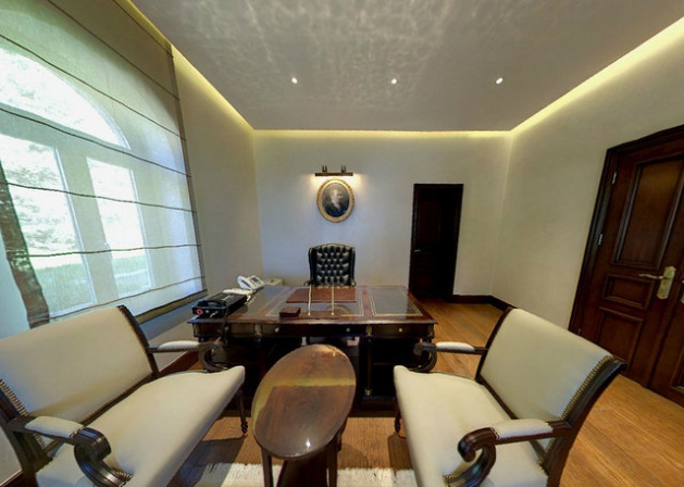Makamın girişindeki holde tablolar, antika masalar dikkat çekiyor. Makama girişte yer alan bekleme salonunda gri ve kahve döşemeler, kristal avizeler bulunuyor.