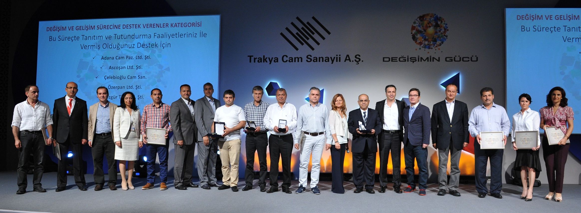 Trakya Cam yetkililerinin düzcam sektörünün dünyada ve Türkiye’deki gelişimi, teknolojideki değişimler, dağıtım kanalları gibi pek çok konuda bilgiler aktardığı etkinlik kapsamında, Trakya Cam’ın 11 iş ortağına da gösterdikleri başarılardan dolayı plaket verildi.