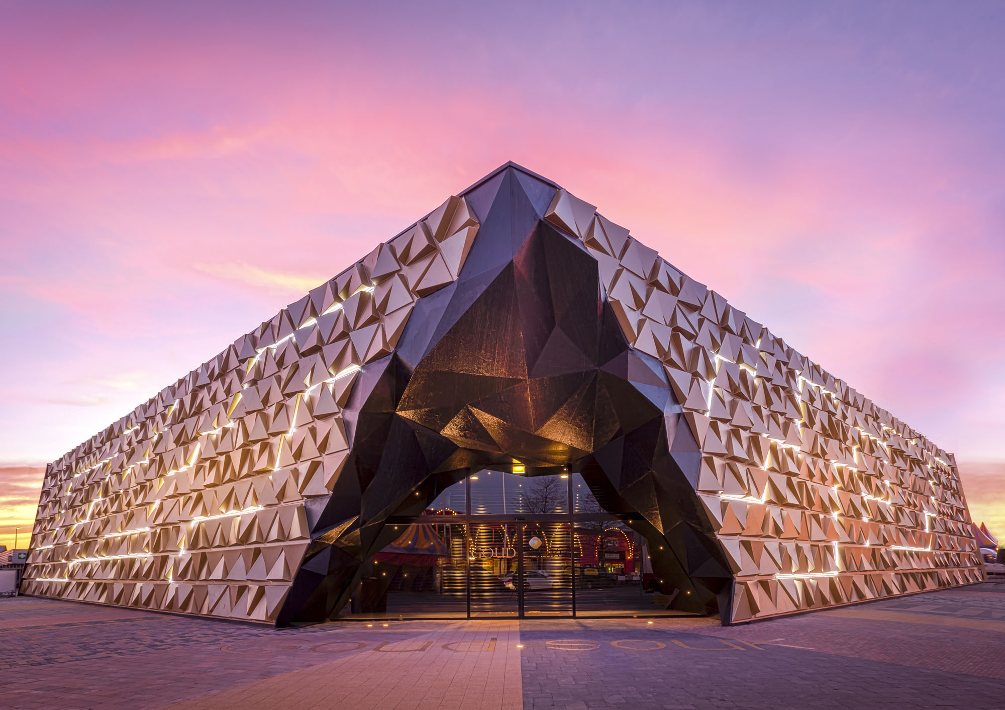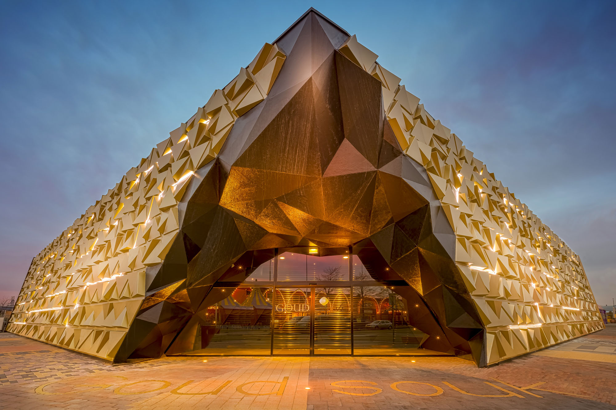 35 metrelik parlayan cephesi aslında ziyaretçilere burada ne bulabileceğini söylüyor: Altın! Giriş tanımlı ve altın külçeleri gerçek hazinenin güvenle tutulduğu yeri işaret ediyor. Parlayan dış cephe tasarımının aksine, iç mekan “basitlik” kavramı ile ele alınmış ve çok mütevazi. Yansıtıcı zemin ve tavanlar dahil her şey siyah renginde. Aydınlatma ile birlikte, tüm dikkatler altına yöneliyor.