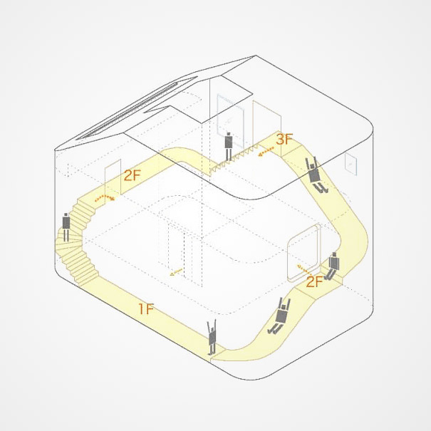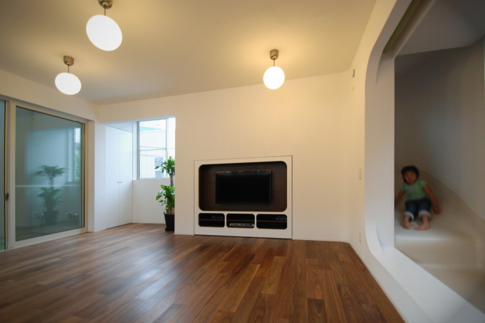 Üç katlı bu ev çocukların isteği üzerine ailesi tarafından inşa edildi. Tasarımı Japon mimarlık firması olan Level Architects tarafından yapıldı. Bu evde üst katlardan alt kata kaymak mümkün olsa da kullanım açısından çocuklar büyüdüğünde evin büyük bir bölümünün kullanımdan kıstığını anlayacaklardır. (Yine de çocuklar için değer)