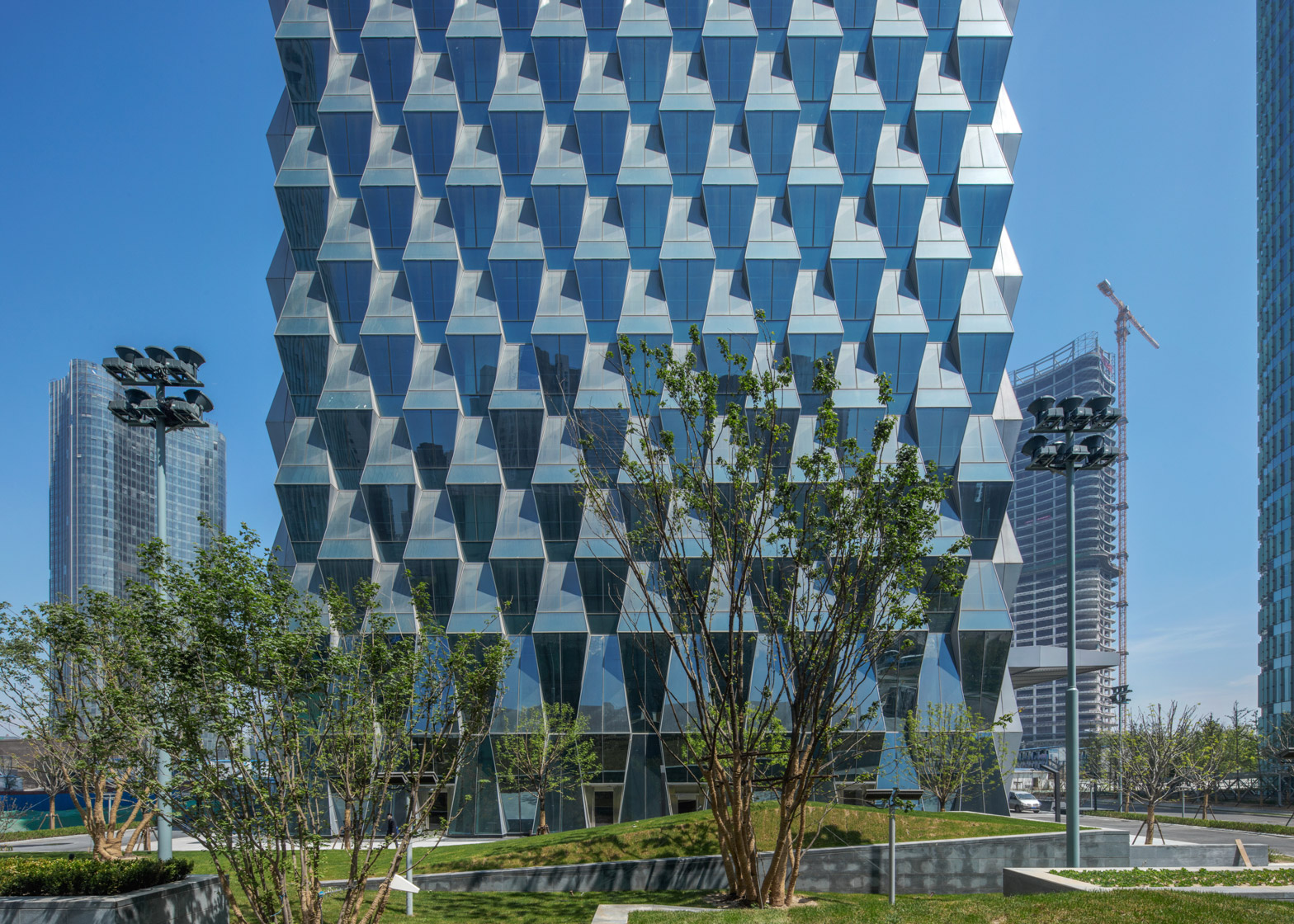 Skidmore, Owings & Merrill tarafından tasarlanan Beijing Greenland Center, cephesi kabartma oyma tekniğinden esinlenilerek tasarlandı.
