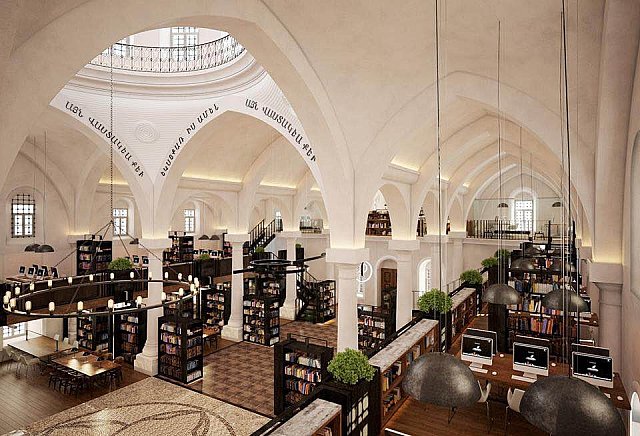 Restorasyon ihalesine çıkılan ve Eylül ayında restorasyon çalışmalarına başlanacak Surp Astvadzadzin (Meryem Ana) Kilisesi’nin 24 saat açık kent kütüphanesi yapılması için proje çalışmaları tamamlandı. Başkan Mustafa Çelik, yapılan sunumda raf sistemleri, masa sandalyeler, aydınlatmalar, dijital çalışma alanları ve dekorasyonla ilgili hazırlanan önerileri inceledi. Daha çok ihtisas kütüphanesi olarak hizmet verecek kütüphanede yaklaşık 50 bin kitap bulunacak. 24 saat açık olacak olan kütüphanede gerek bireysel gerek grup çalışmaları yapılabilecek. Kütüphanede, dijital servislerden elektronik kitap ve dokümanlara da ulaşılabilecek. Kütüphanenin yan tarafına bir de “Kitap Cafe” yapılacak. 24 saat açık kütüphane restorasyon ve teşhir-tanzim işlerinin tamamlanmasıyla 2017 sonbaharında hizmete açılacak.