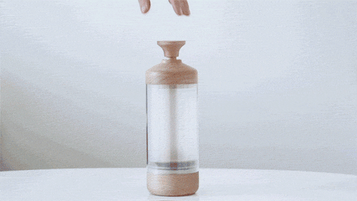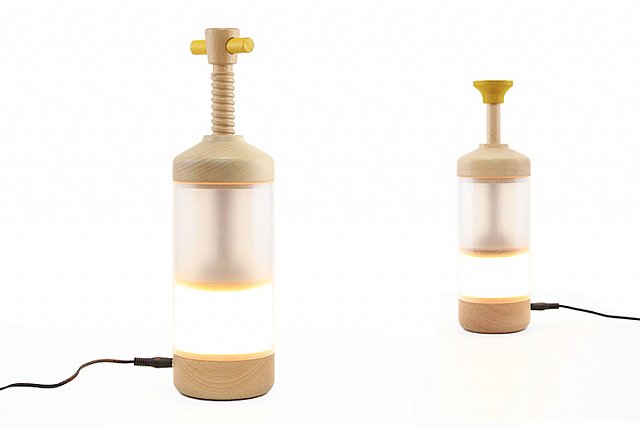 Kullanıcı plastik tüpteki pistonu kullanarak ışık miktarı değiştirip ortamı daha aydınlık veya loş hale getirebiliyor. Lambanın gövdesi kayın ağacından imal edilmiş, şırınga benzeri plastik tüpün içine ise 420 lümen LED ışık yerleştirilmiş.