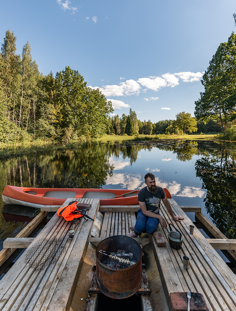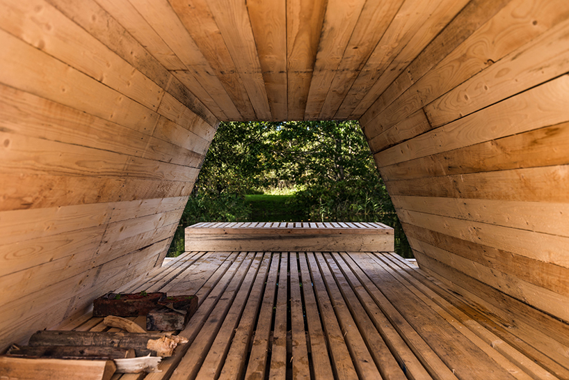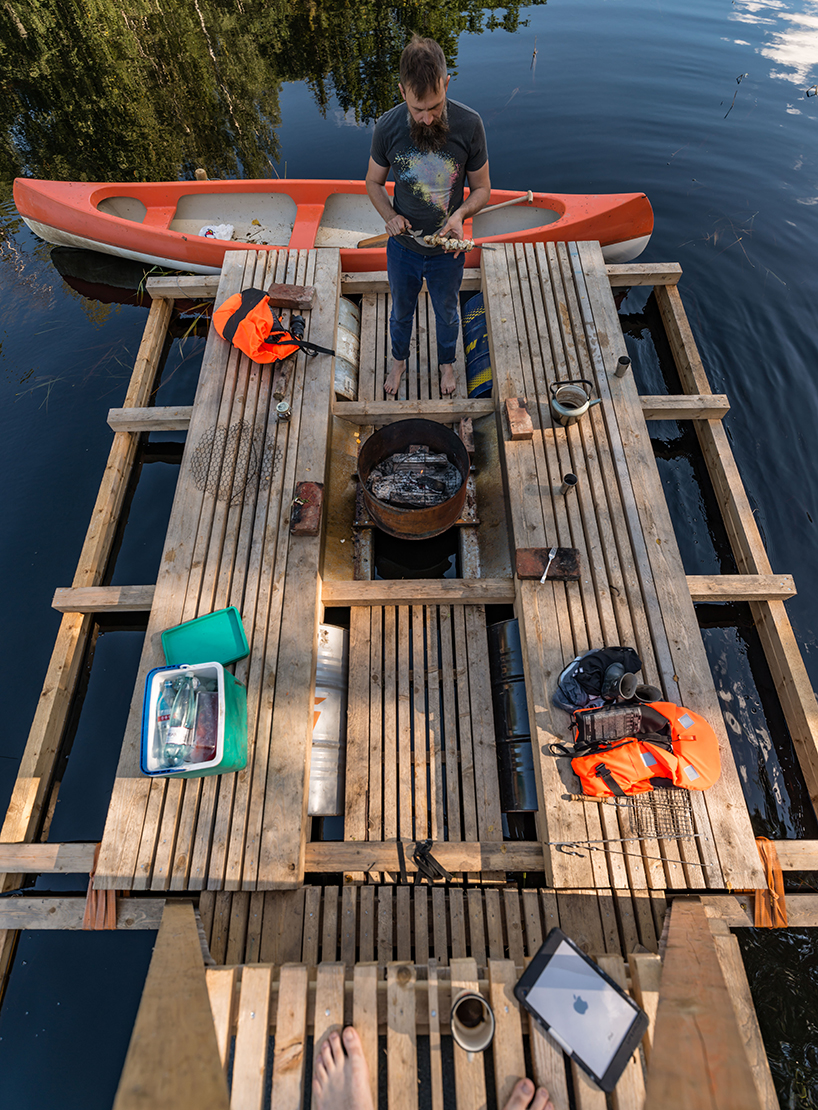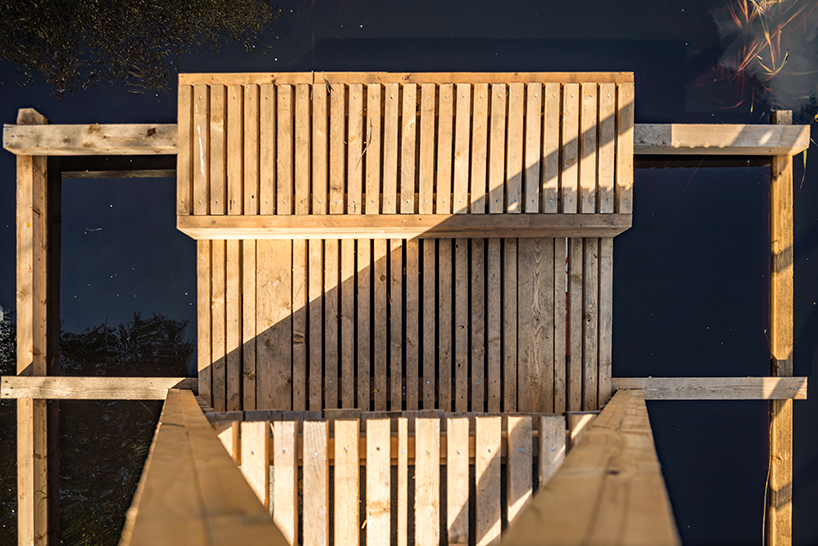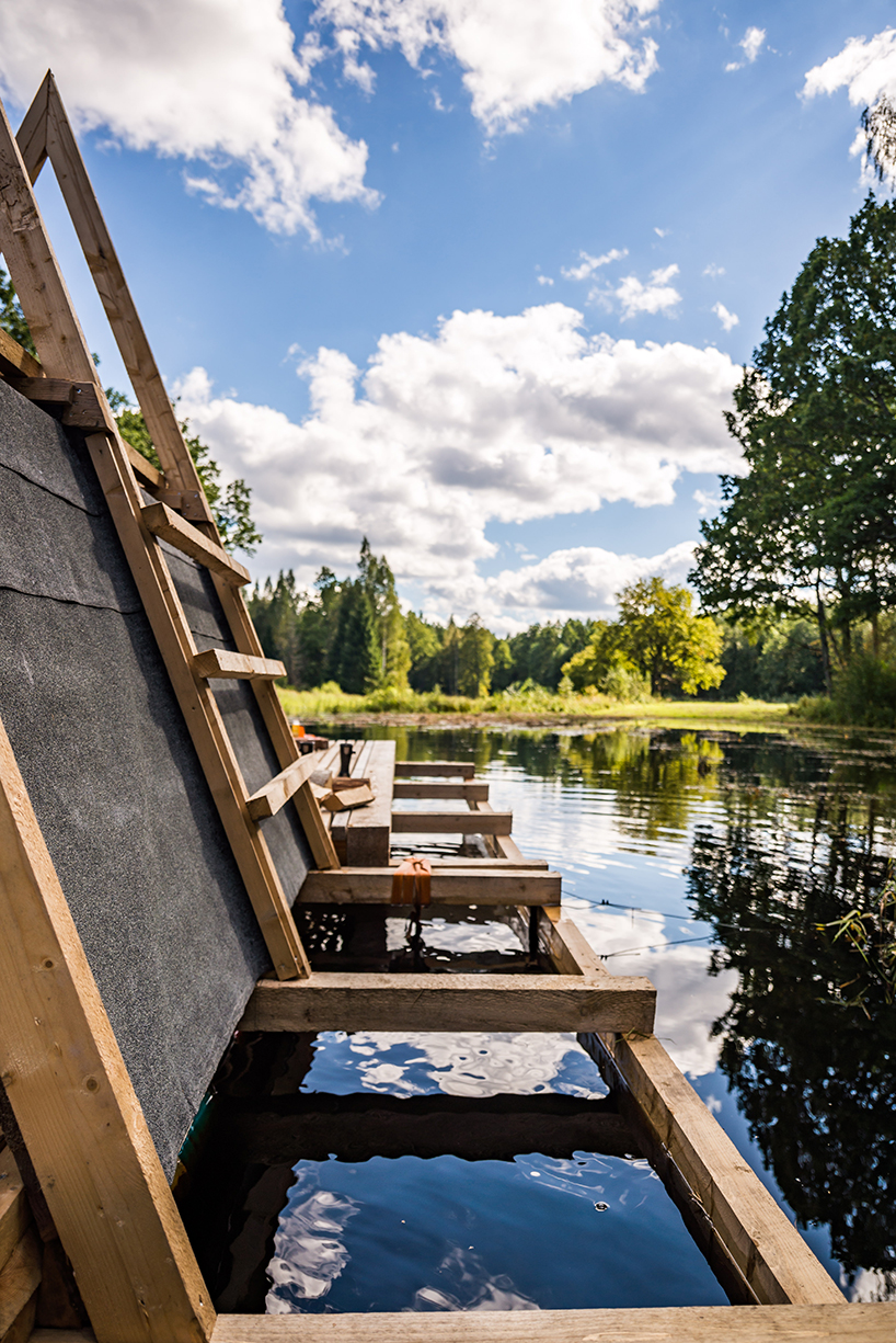 Estonya Sanat Akademisi İç Mimarlık Bölümü öğrencileri tarafından Soomaa ormanlarında düzenlenen yaz atölyesinde, doğanın ihtiyacına hizmet verecek VEETEE adlı yüzer bir yapı inşa etti.icm12