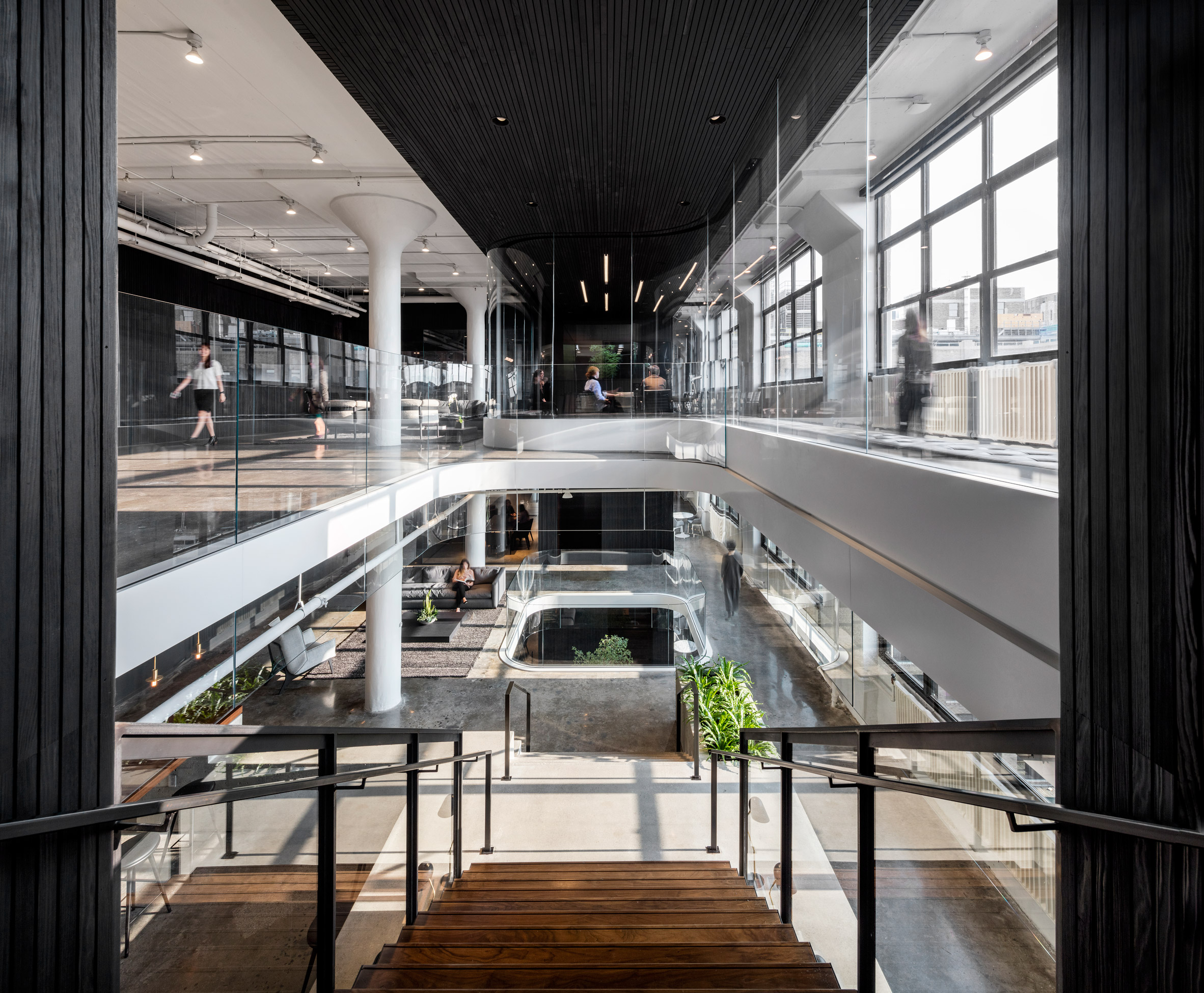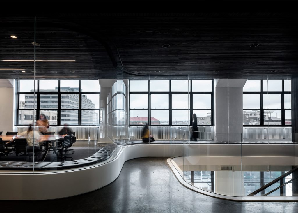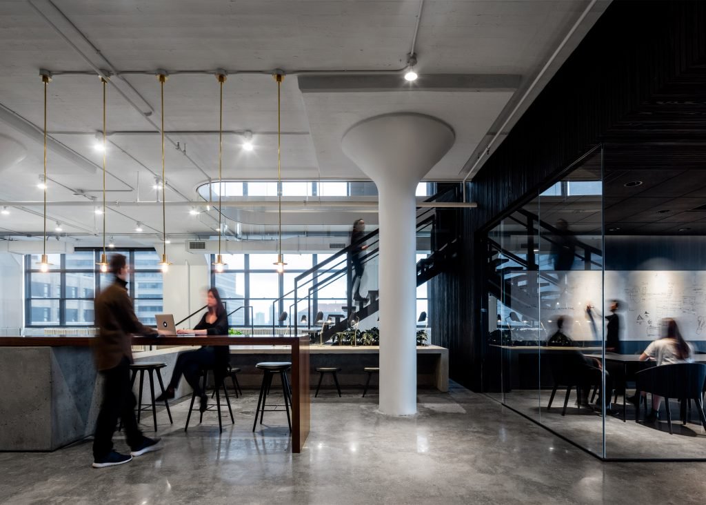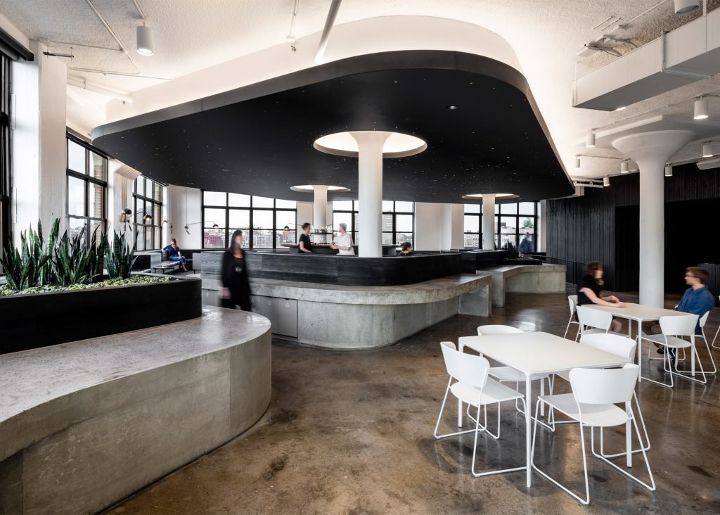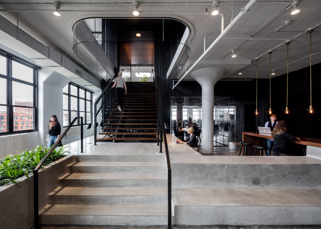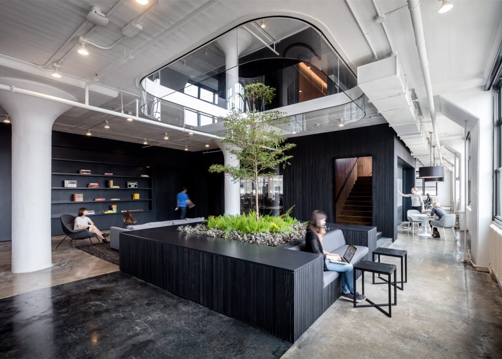 drBireysel ve gruplar halinde çalışan Squarespace ofisinin çalışma alanı için ying-yang konseptinden ilham alındı. Benzer yaklaşımlar Wix, Pinterest ve Evernote ofis merkezlerinde de bulunuyor.