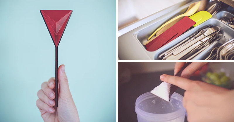 Tasarımcı,mucit ve öğretmen Rahul Agarwal yeni bir proje ile büyük ölçü kaşıklarından kurtulmanın bir yolunu bulmuş ve bir kaşık tasarlamış. Çokgenlerden oluşan, kullanılmadığı zaman düz bir şekilde duran ve tutulduğu yerden kıvrıldığında farklı ağırlıklarda malzeme taşıyan bir tasarım bu.flat-measuring-spoon_131016_01
