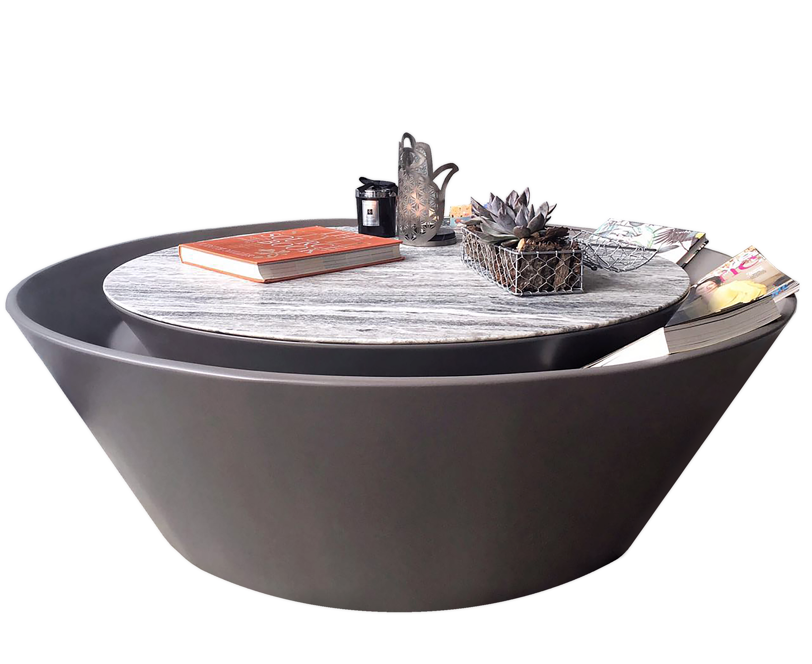 Tasarım, mermer malzemenin kullanım alanını genişleterek, yaşam alanlarında da yer almasına öncülük ediyor. Orta sehpanın, boşluk bölgeleri kitap,dergi,elektronik vb gibi ev aksesuarlarını organize etmeye yardımcı olarak esnek kullanım sunuyor. Diğer önemli özelliği ise, gövdenin altında bulunan gizli tekerleklerin sağladığı hareket kolaylığının olması.