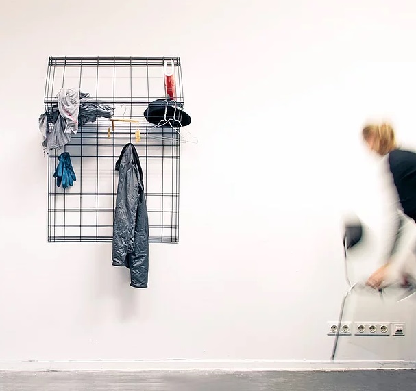 Ürün, birleşim noktalarında ek desteklerle takviye edilmiştir. Tellerden oluşan düzensiz kafes yapısı, entegre edilmiş iki kanca bulunduruyor. Aynı zamanda şal, eldiven veya şemsiye için yer sağlayan modifiye edilmiş bir şapka rafına da sahiptir.