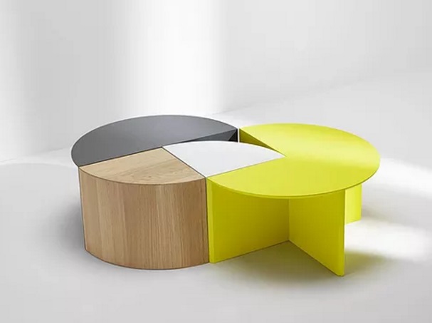 Hi Furniture tasarım atölyesi, dairesel grafik sisteminden esinlenerek modüler bir kahve sehpası tasarladı.