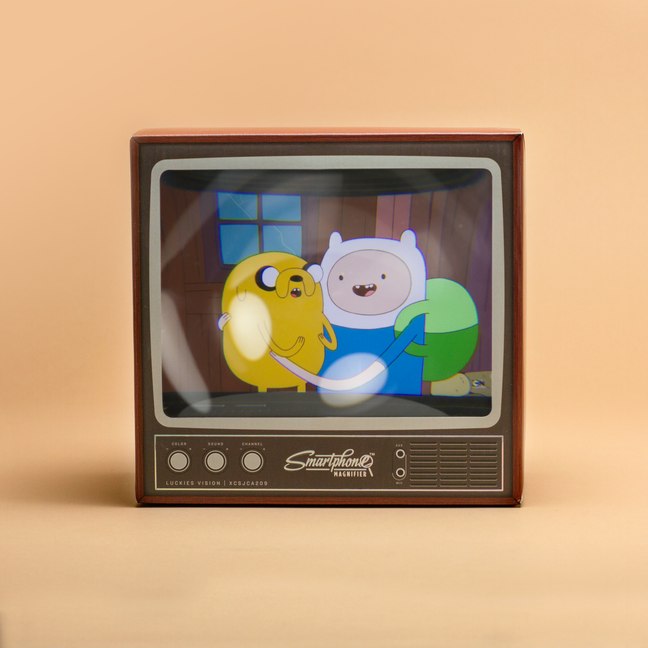 Telefonunuzu bir VHS kaset şeklindeki kutuya yerleştirerek ve bandı video kaset yuvasına kaydırarak orijinal boyutlarının iki katında videolar oynatabilirsiniz. Smartphone Magnifier tasarımıyla, köklerine geri döndü. Şık kutu şekli, kağıttan yapılmış ahşap, nostaljik televizyonunun ekranı çarpık ve uzaktan kumandası yok.