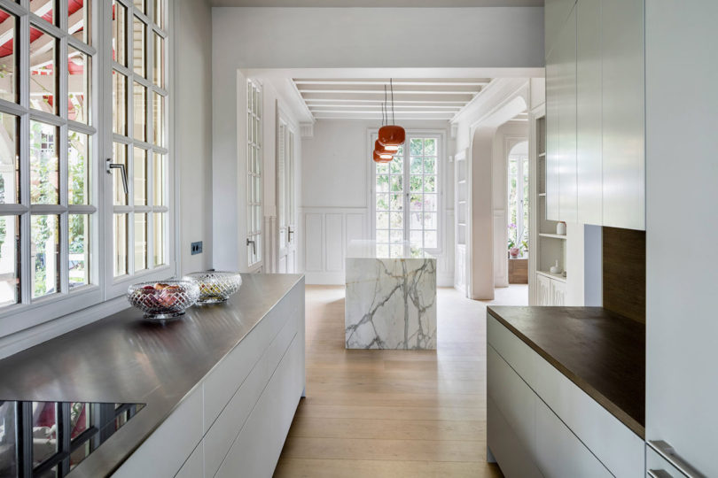 İspanyol mimarlık firması 05 AM Arquitectura, 19. yüzyıl sonlarında Paris’in banliyölerinde inşa edilen “Maison à Colombages” yapısının, iç mekan restorasyonunu tamamlayarak farklı bir çalışma ortaya koymuş. Yeni iç mekan, geleneksel dış cephesinin yanında epey şaşırtıyor, ancak evin stiline saygı duyularak tasarım tamamlanmış.