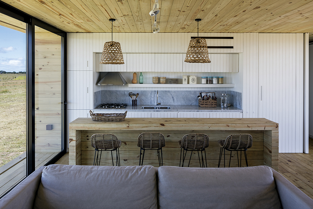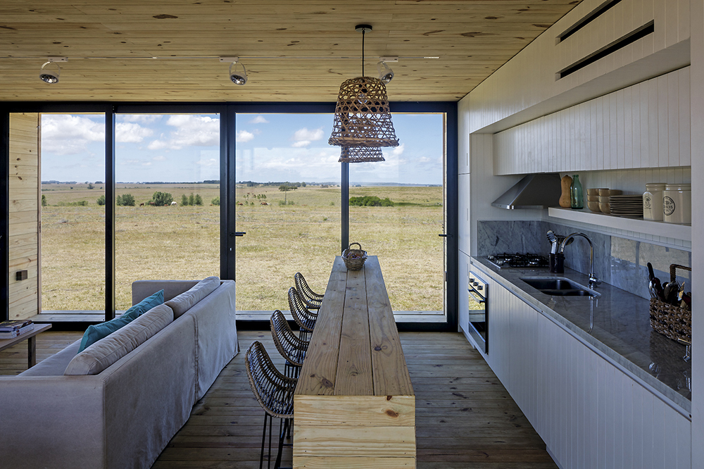 Oldukça düz bir araziye pek de müdahale etmeden oturan bir yapı. Üretim modeli ise prefabrik. Ve yine minimal, geçirgen, simetrik.