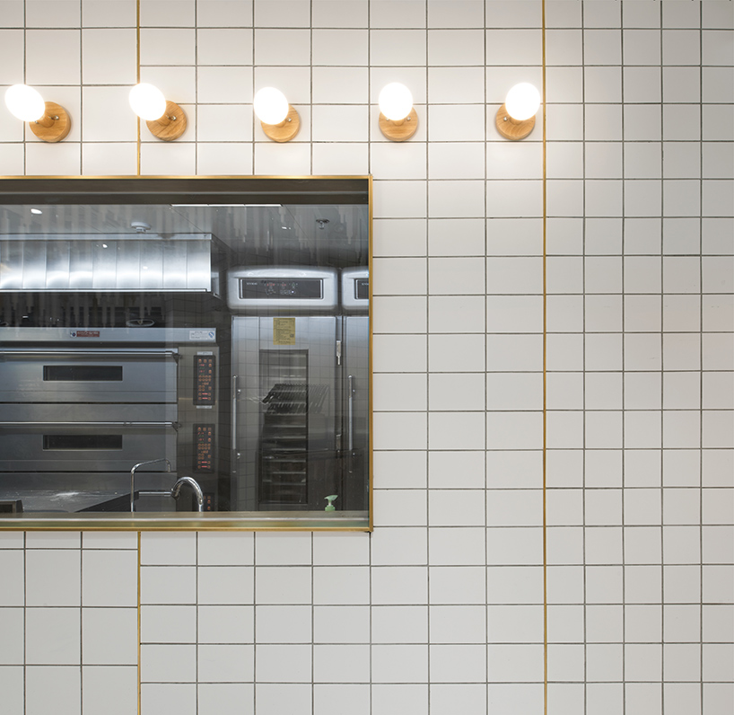 7 farklı alana bölünen mekan, her bir mekan için farklı seramik boyut ve yapıştırmalarıyla birbirinden ayrılmış. Bu sınırları belli etmek için keskin bir pirinç plaka ince bir şekilde lineer doğrultuda, iki derz arasından geçirilmiş. Pirincin mekandaki kullanımı, daha şık bir ortam oluşmasını sağlamış.
