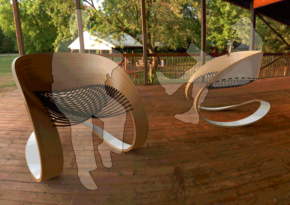 Kullanıcı yönetimindeki hareketi sayesinde bir sallanan sandalye görevi gören tasarım, malzeme renk tonu ve malzemenin kendisi sebebi ile doğa ile uyum sağlayacak şekilde üretilmiş.