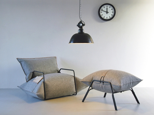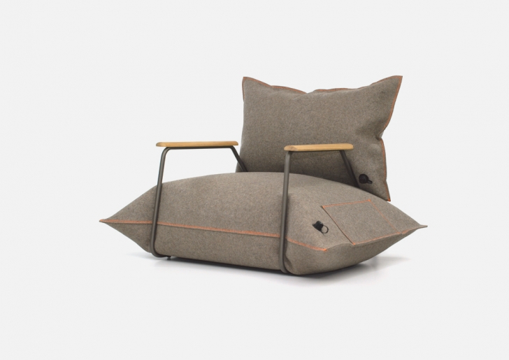 Polonyalı tasarım stüdyosu Malafor’un Air isimli koleksiyon, kullanılmış yat kumaşları ve endüstriyel keçe atıklarının mobilya tasarımına inovasyon katarak dönüştüğü güzel örneklerden biri. Kullanılmış malzemeleri birbirine dikerek ve içlerine hava pompalayarak, olduğu yerde durabilen oturma ünitelerine dönüştürüyorlar. Mobilya içindeki hava da dışarıdan görünen bir tıpa ile kapatılarak, tasarıma daha da endüstriyel bir hava katıyor.