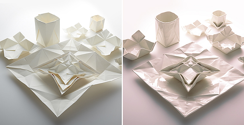 Hamburg merkezli seramik sanatçısı Angelina Erhorn, Moij Design için origami sanatından esinlenen yemek takımı tasarladı.
