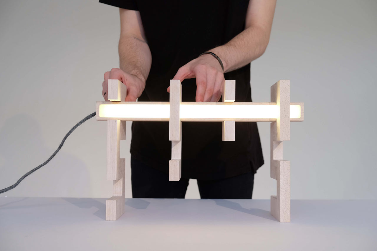 Whitney Robinson tarafından tasarlanan aydınatma armatürü Ess Lite, yetişkinler için eğlenceli bir oyuncak. Sağlam ahşap bileşenleri, sonsuz şekilde ışık oluşumları için bulmaca parçaları gibi bir araya getiriliyorlar.