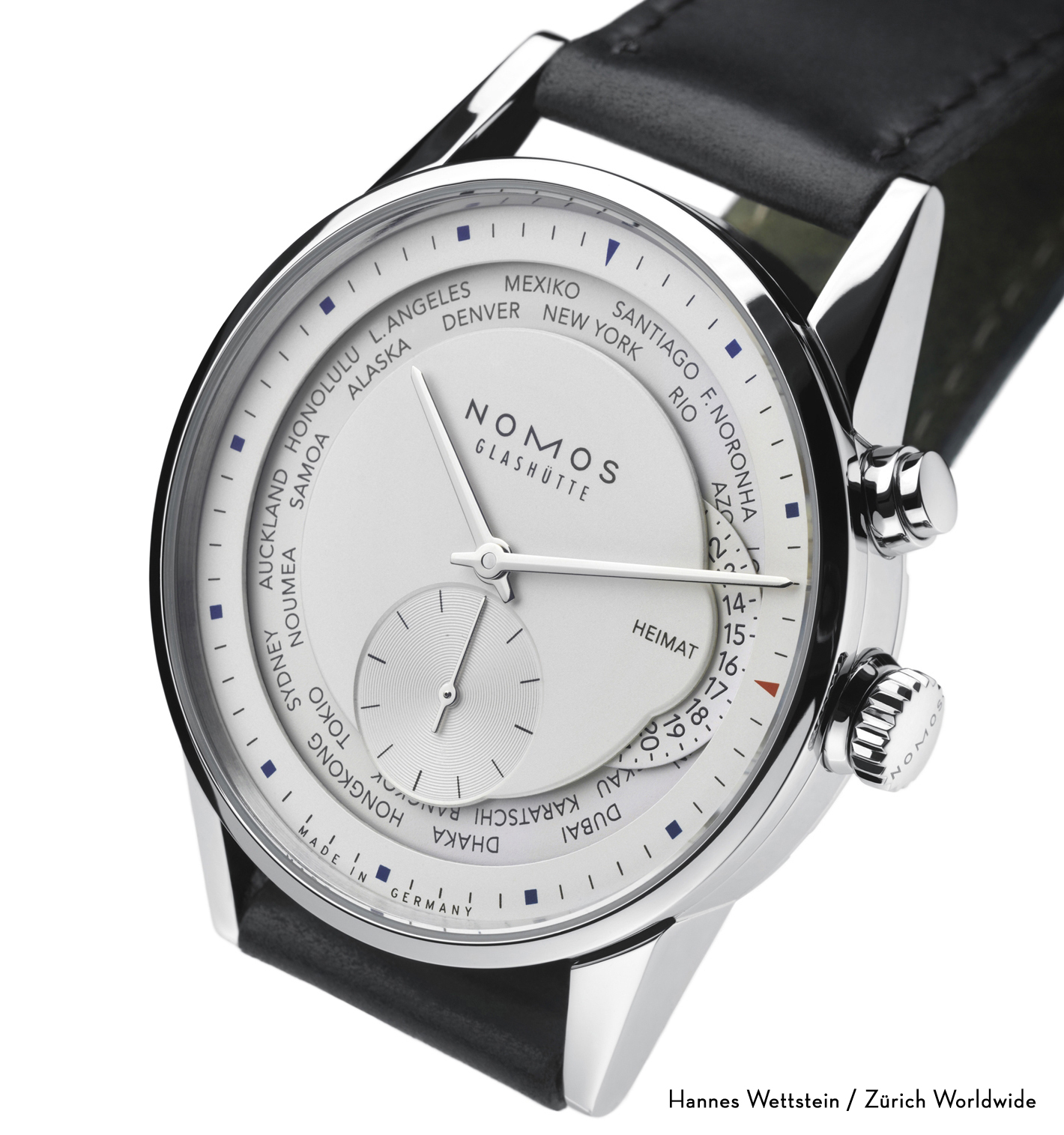 Hannes Wettstein’in Nomos Glashütte için tasarladığı “Zürich Worldwide”