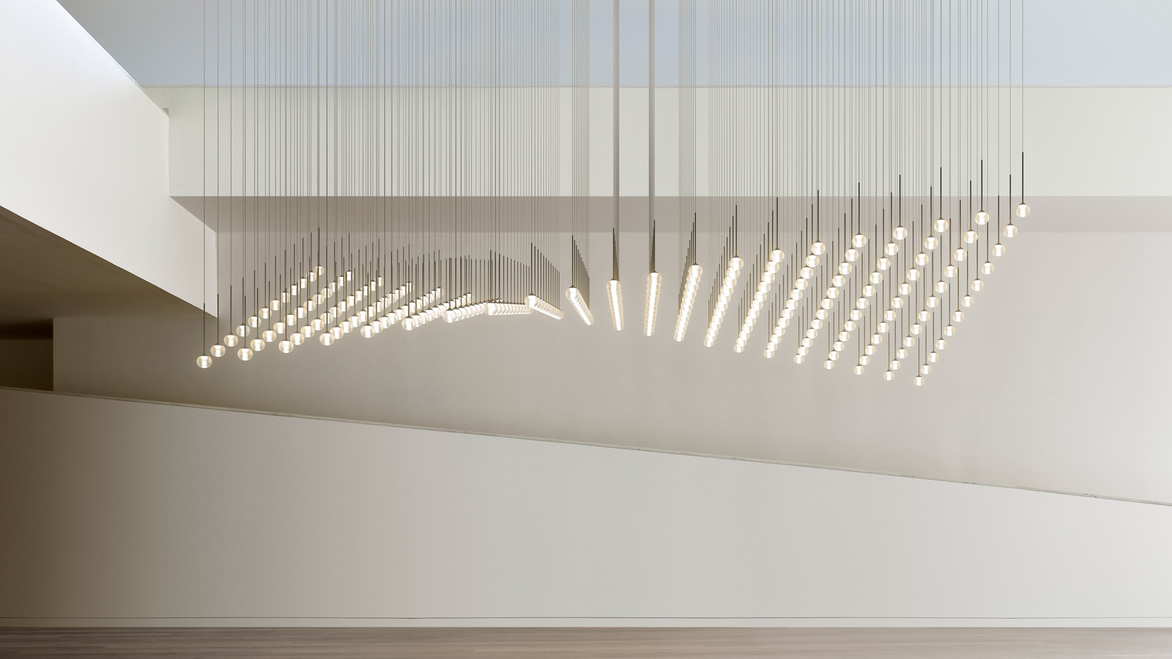 Vibia, yeni tasarımı olan ve cam kürelerden oluşan özelleştirilebilir bir aydınlatma sistemini piyasaya sundu.