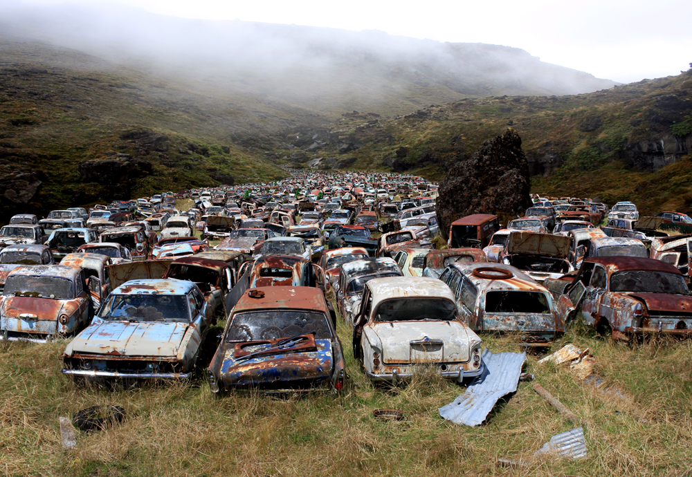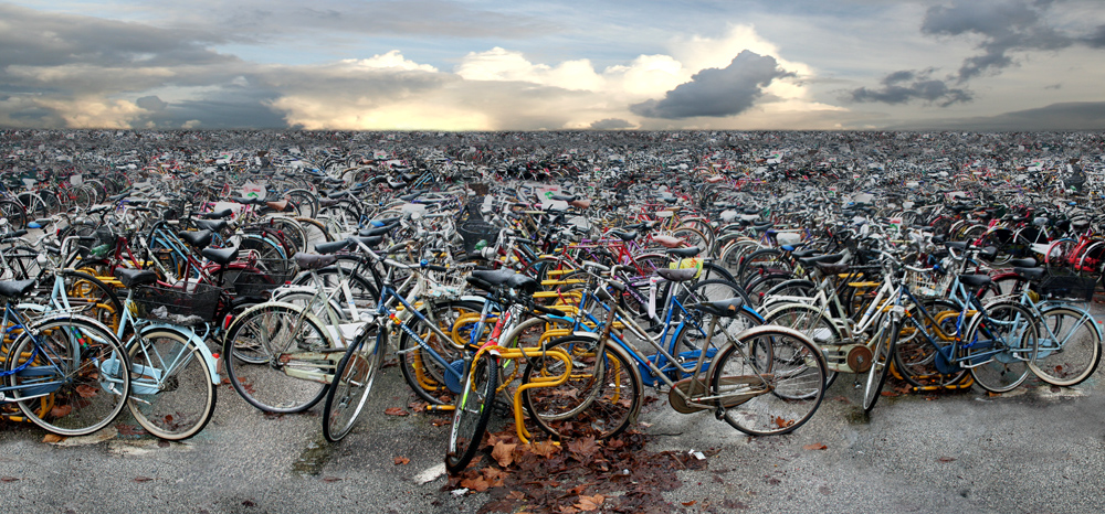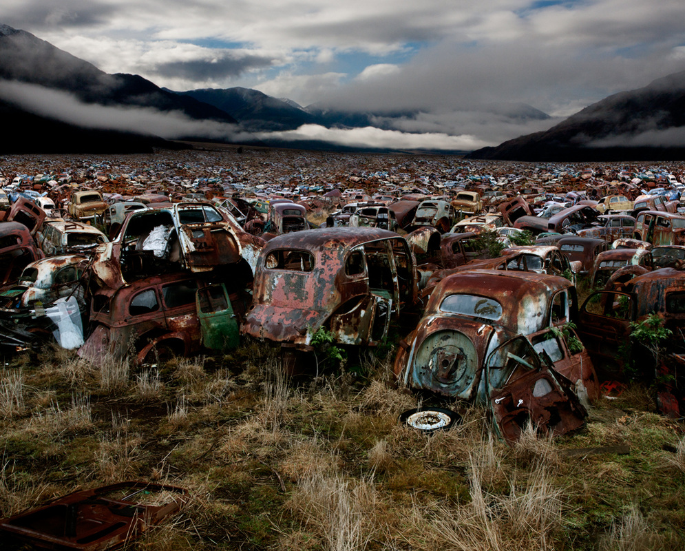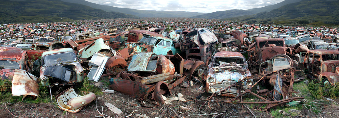 Sanatçı PJ Paterson, terk edilmiş araba ve bisikletlerle doldurduğu kent peyzajlarından apokaliptik bir dünya tasviri yarattı.