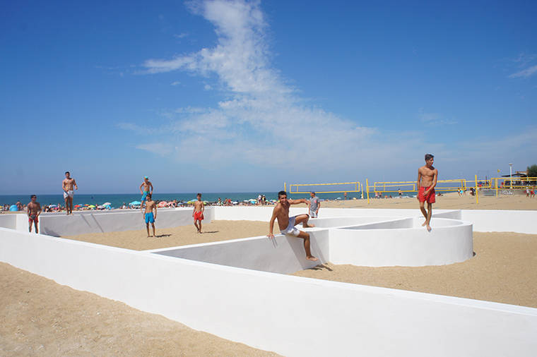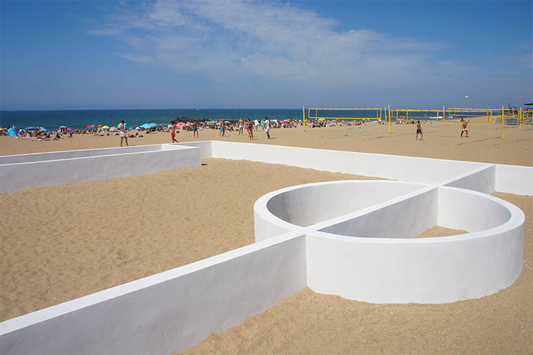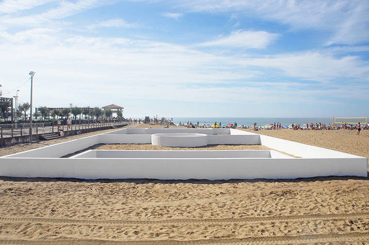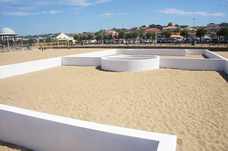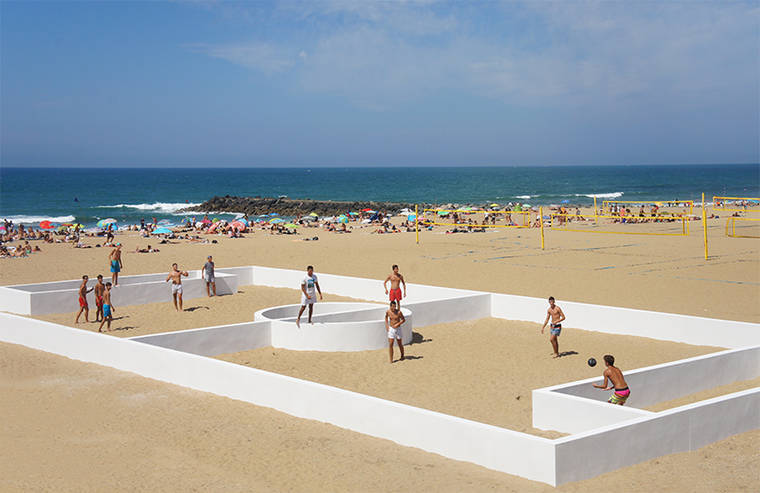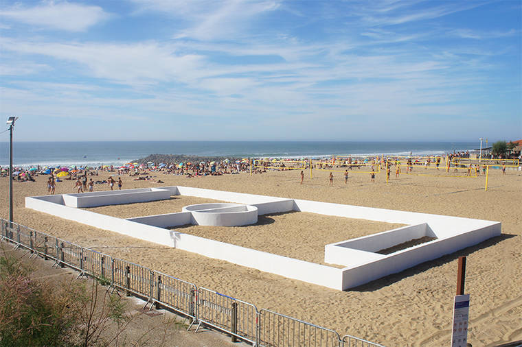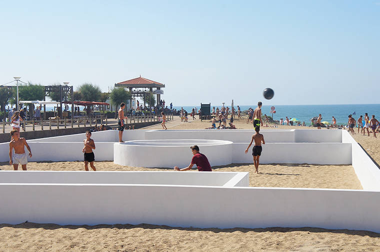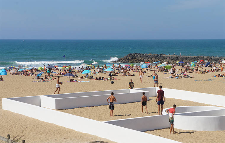 Sanatçı Benedetto Bufalino, ‘Terrain de Sport’ adını verdiği enstalasyonunu Fransa, Anglet’teki bir sahile kurdu. Klasik futbol sahası çizgilerini bir duvar gibi zeminden yükselten Bufalino, fiziksel ve mental sınırları kavramsal olarak sorguluyor. Biennale Internationale d’Art of Anglet için hazırladığı eserde sanatçı oyuncuları, oyunu ve oyunun kurallarını büsbütün yeniden keşfetmeye davet ediyor.