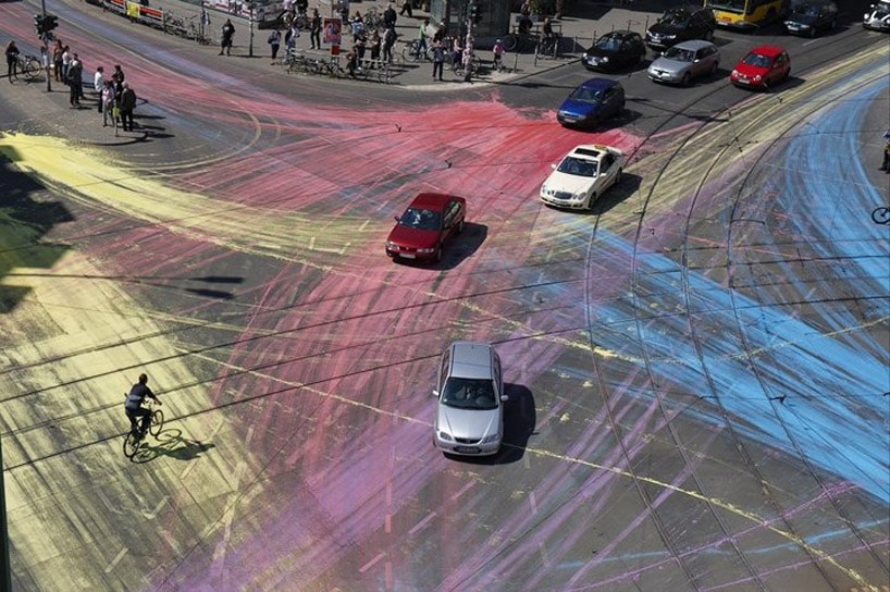 Hollandalı sanatçı Iepe Rubingh, anonim bir takımla birlikte Berlin Rosenthaler Platz yakınındaki bir otoyol kavşağını rengarenk boyanmış devasa bir tuvale dönüştürdü.