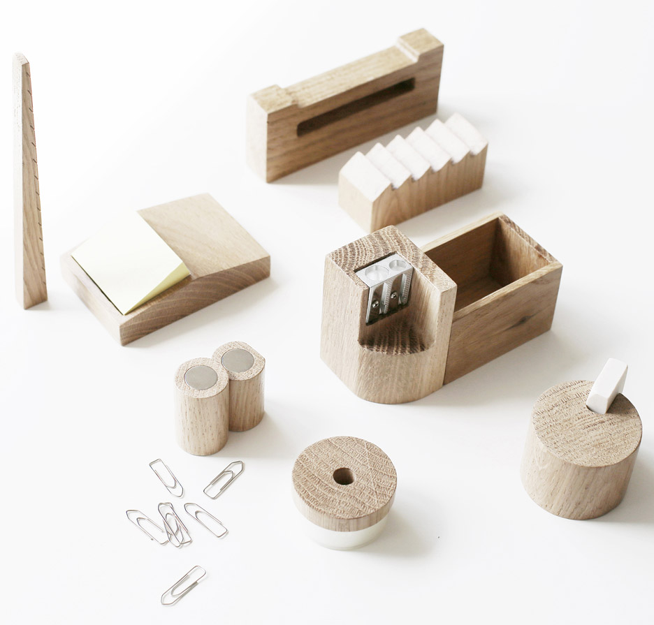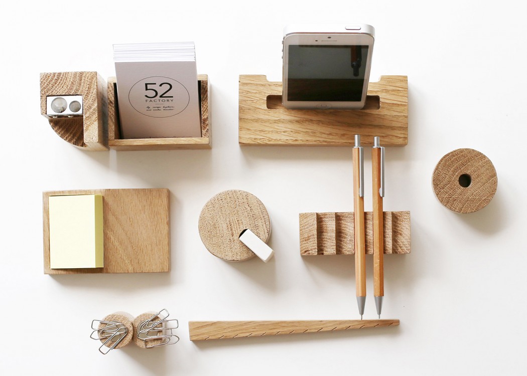 Russian Avant-Garde Desktop Organiser adını taşıyan koleksiyon, bir marangoz atölyesinden edinilen atık meşe parçalar kullanılarak yapılmış.