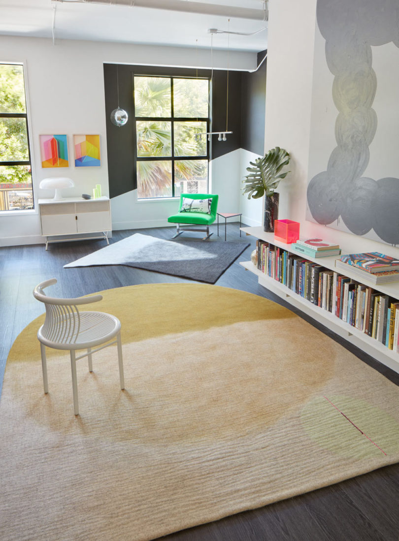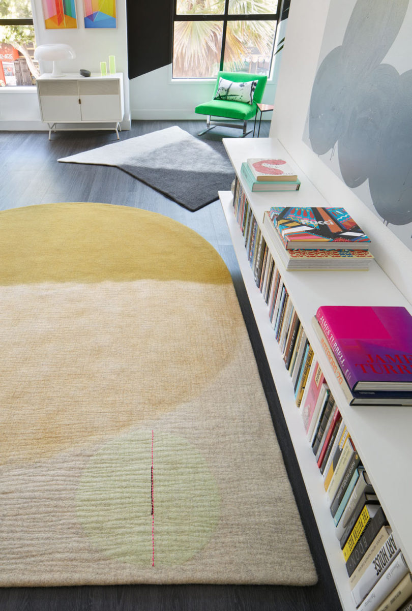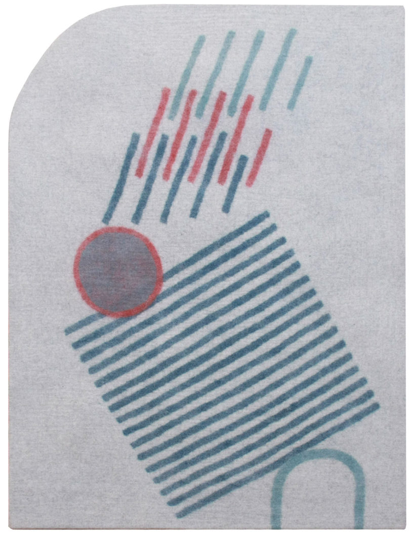 Sol Lewitt ve Ellsworth Kelly gibi soyut, minimalist ressamlara referans olan Alison Damonte Koleksiyonu, olağandışı halı şekillerine neden olan geometrik formlarla örtüşüyor. Hinterland Design, yüzen geometrik şekiller ve soluk gri arka planları Memphis-deco tarzıyla bir araya getiriyor. Eğriler ve asimetrik saçaklar gibi eğlenceli detaylar postmodern bir görünüm ile sonuçlanmış. Medya uzmanı Raha Raissnia ise halı tasarımlarına siyah-beyaz yağlıboya tablolarını ve siyah-beyaz filmlerini referans alarak kendi deyimiyle “çiğ ve yapılandırılmamış” bir dokunuş eklemiş.