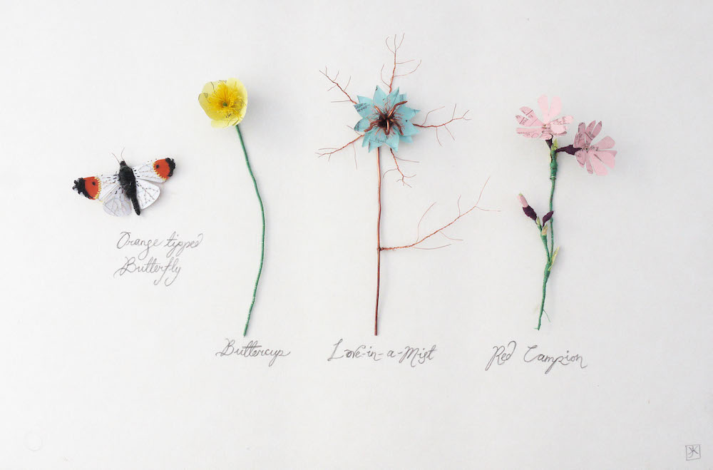 Sanatçı Kate Kato, doğadan ilham aldığı bitkileri, böcekleri atık kağıtlardan heykele dönüştürerek yaratıcı bir işe imza atıyor.