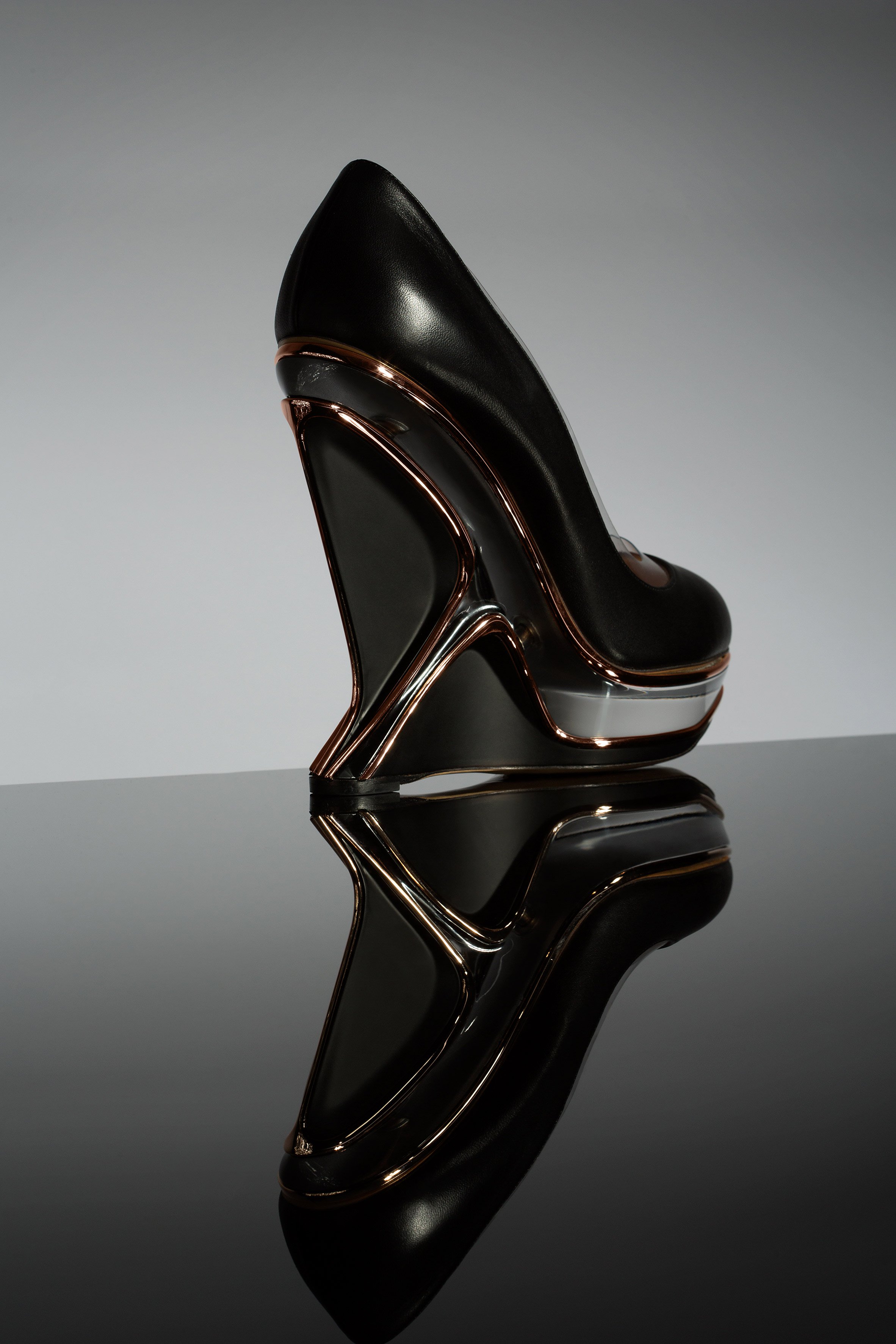 Moda markası Charlotte Olympia, mimar Zaha Hadid'le birlikte tasarlanan yüksek topuklu ayakkabılar ve çantasını sundu. Rose gold tonları platform topuk ayakkabılar ve şeffaf çanta pleksiglas yapılmış ve Hadid'in imzası heykel stilini yanısatan akışkan şekiller bulunmaktadır.