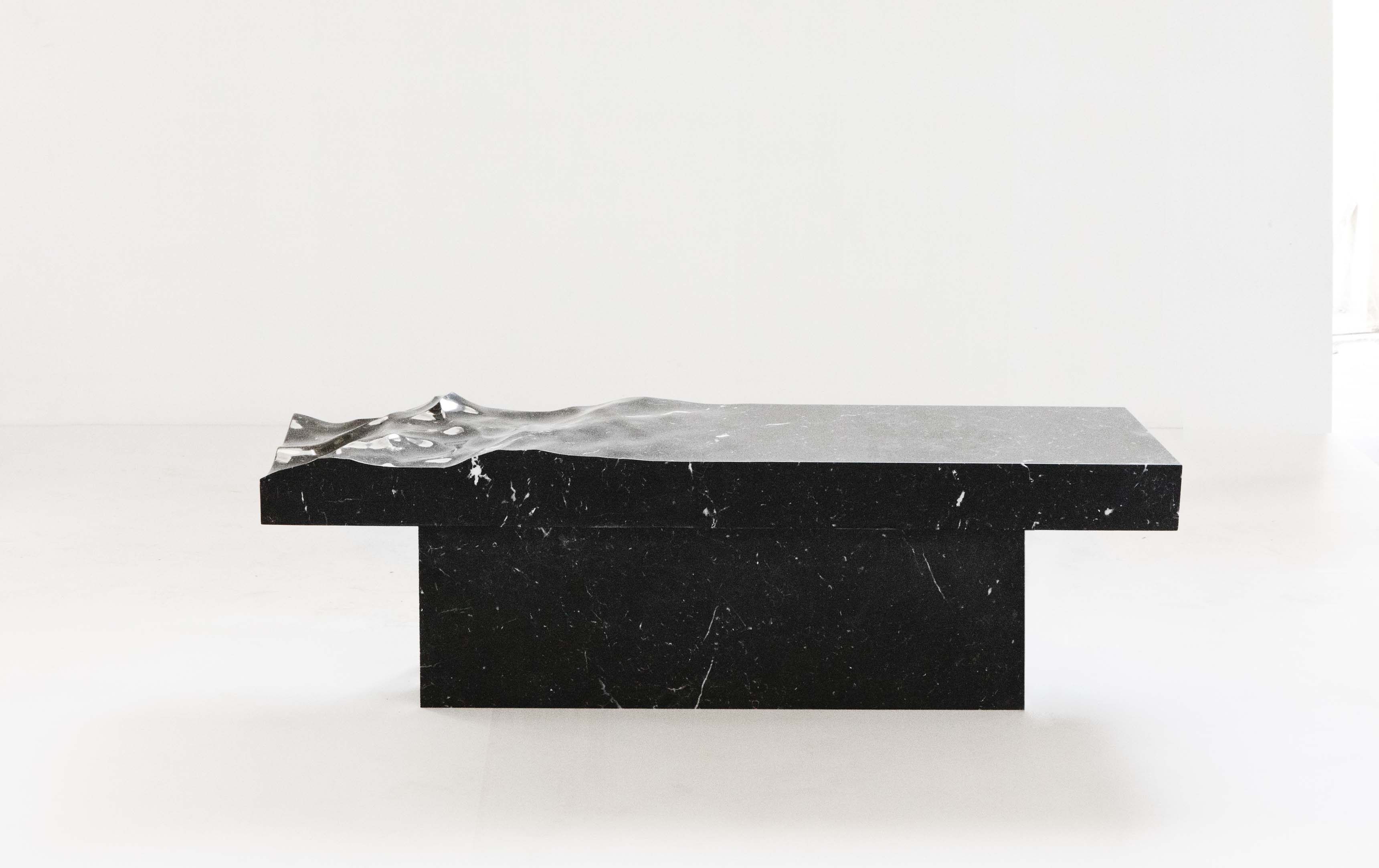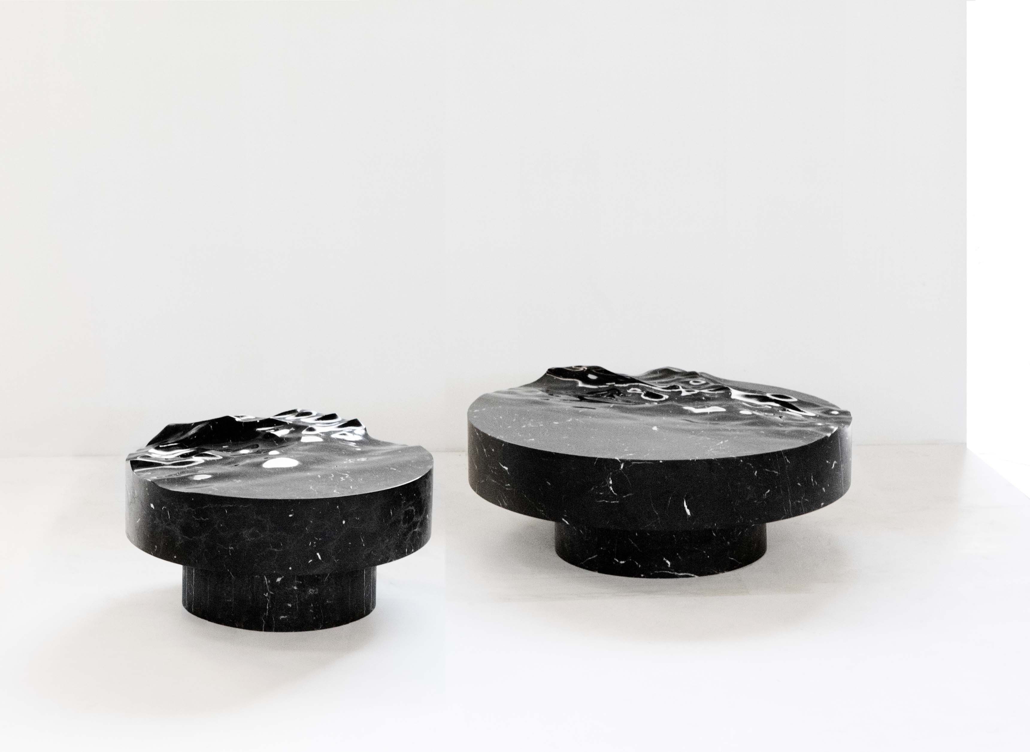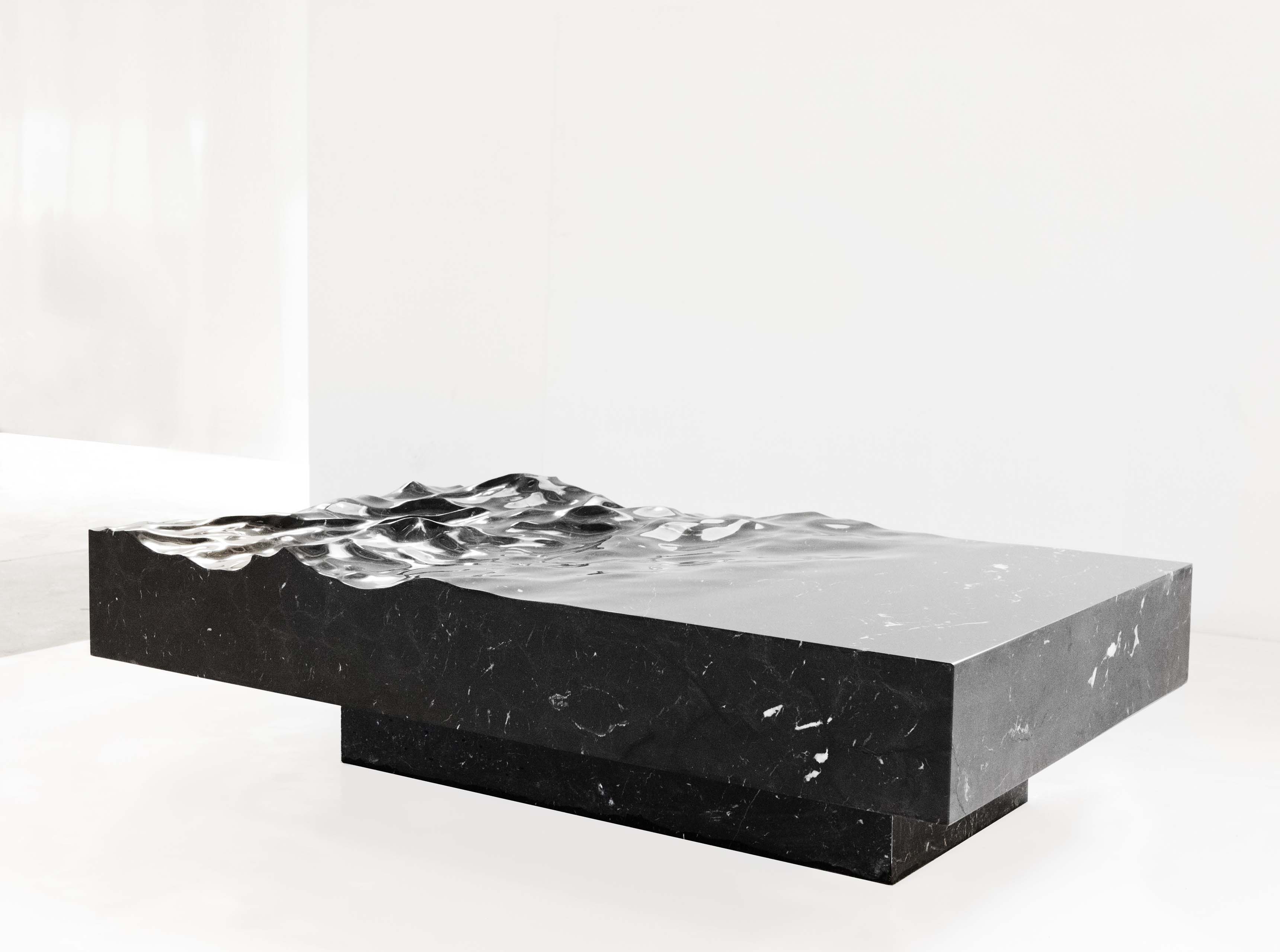 Fransız tasarımcı Mathieu Lehanneur tarafından tasarlanan Ocean Memories koleksiyonu, mermer heykellerdeki okyanus dalgalanmalarının gerçeküstü bir görüntüsünü sergiliyor.