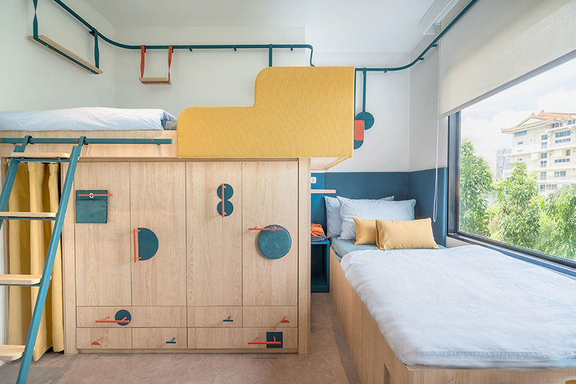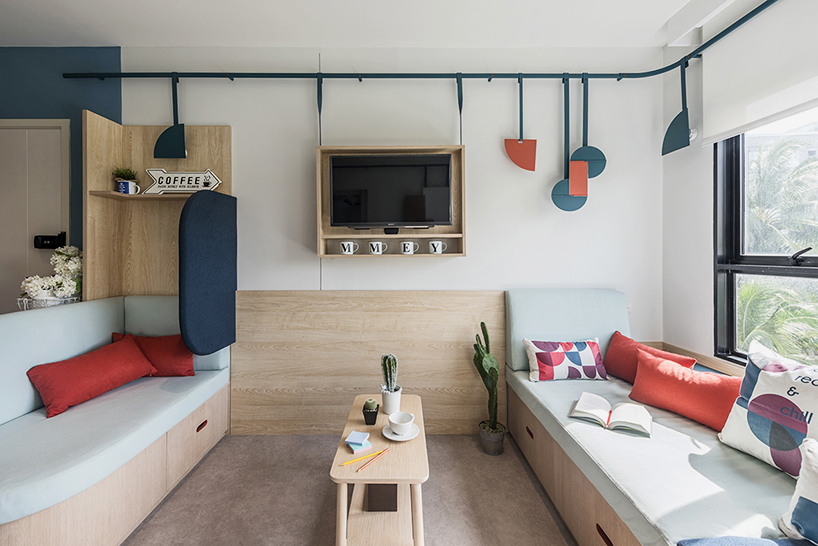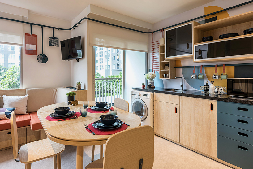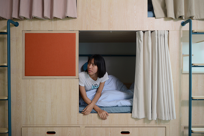 Space scholarship; Tayland’da lider bir konut geliştiricisi AP public company limited tarafından başlatılan kurumsal sosyal sorumluluk girişiminin bir parçasını oluşturuyor. Aynı zamanda çalışma Bangkok’taki birkaç apartman dairesinin iç şemasını tasarlamak amaçlı başlatılmış. Firma, birlikte yaşama felsefesi hakkında geniş çaplı araştırmalar yapmış ve çeşitli ölçekler, ayrıntılar, malzemeler ve renkler yoluyla ‘toplumsal örtüşme’ fikrini yansıtmaya karar vermiş. Esneklik ve işlevsellik aynı zamanda genel tasarım düşüncesinin önemli noktalarını temsil ediyor. Apartman içi iki farklı şekilde işleyebiliyor; öğrencilerin birlikte yemek yemeyi, sohbet etmeyi ya da mahremiyet eğitimini öğrenmelerine bağlı olarak açık olarak veya kapalı olarak kullanımı üzerine. Boş alanların verimli kullanılması, gizli depolama sistemleri, taşınabilir ve uyarlanabilir unsurlar ve pratik mobilyalar, öğrencilerin organize bir daire tasarlamasına oldukça yardımcı olmuş. Çok amaçlı, modüler elemanlardan faydalanan öğrenciler, küçük alanları değerlendirerek mekandan maksimum verim almayı başarmışlar.