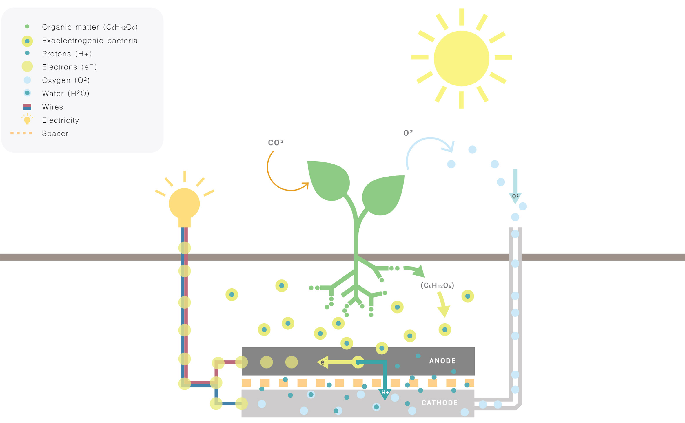 Living Light cam tüpün içindeki bir bitkiyi kaplar. Bitki fotosentezinde olduğu gibi, organik bileşikleri bir toprak odasına bırakır. Organik madde, doğada bulunan bakteriyel etkileşimleri taklit eden bir sistem olan bir mikrobiyal yakıt hücresi vasıtasıyla sağlanan bakteriler tarafından parçalanır. Bu olduğunda, elektronlar yaratılır ve toprağın dışına taşınır. Elektrik akımı bir tel boyunca geçirilir ve LED’lerle donatılmış bir halkayla beslenir. Bunlar, bir kullanıcı bitkinin yapraklarına dokunduğunda yanar.