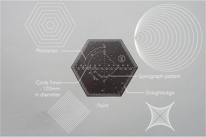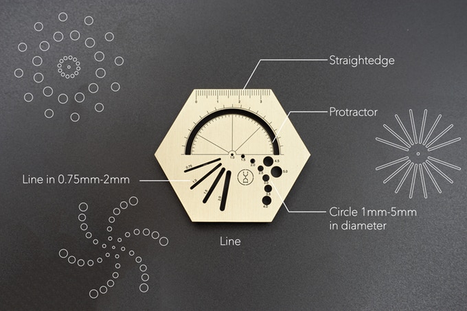 Yuan tasarım stüdyosu tarafından tasarlanan Hexagonal Ruler; tasarımcıların her an her yerde eskiz yapabilmeleri için tasarlanmış çok işlevli altıgen cetvel koleksiyonudur. Hexagonal Ruler, saniyede eskiz yapmanızı sağlayan metalik bir cetveldir.