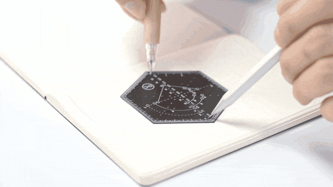 Eskiz araçları genelde büyüktür ve kafe gibi kamuya açık alanlarda kullanılmaları kolay değildir. Bu nedenle Yuan firması, cebinize sığabilecek boyutta 4 adet cetvelden oluşur. Her altıgen cetvel sadece 72×62 mm’dir. Özel sipariş üzerine tasarlanmış tasarım aracı, tasarım yolculuğunuz boyunca bir dizi profesyonel aracı taşır.