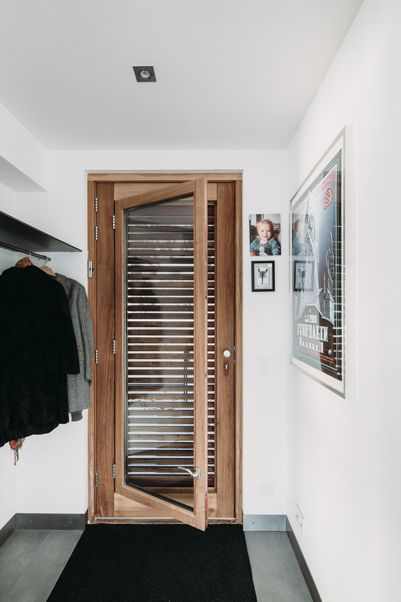 ‘Haarlem Shuffle’ isimli villa, ince bir alüminyum çatı örtüsü ile birlikte ahşap bir cepheye sahip. Dış kapının arkasında, gizli bir ekstra pencere bulunuyor. Aynı zamanda ayakkabı yerleştirmek için de ekstra bir alan bulunuyor. Giriş bölünümü, villanın sosyal alanlarına açılıyor. Mutfak, donanımsız beyaz dolaplarla ve eşleşen tezgah üstü tasarımıyla minimalist bir tasarıma sahip. Oturma odasında, şömine ve daha sıcak aylarda küçük bir güverteye erişmek için sürgülü bir kapı bulunuyor. Ayrıca bu katta bir sürgü kapılı bir yatak odası bulunuyor. Yatak odası ve banyo, duş ve tuvaleti odanın geri kalanından ayıran buzlu cam ile aynı alanı paylaşıyor. Ana alana geri döndüğümüzde ve pencere duvarıyla villanın alt seviyesine inen bir merdiven görüyoruz. Alt katta bir müzik odası gibi faaliyet gösteren açık alanların yanı sıra iki yatak odası, depo ve mekanik odalar ve bir çamaşırhane bulunuyor.