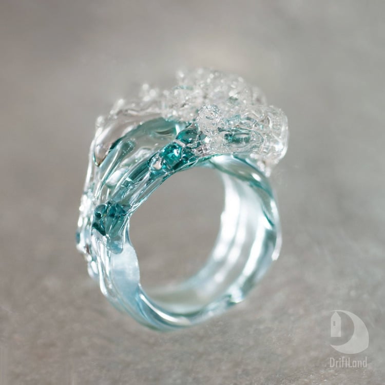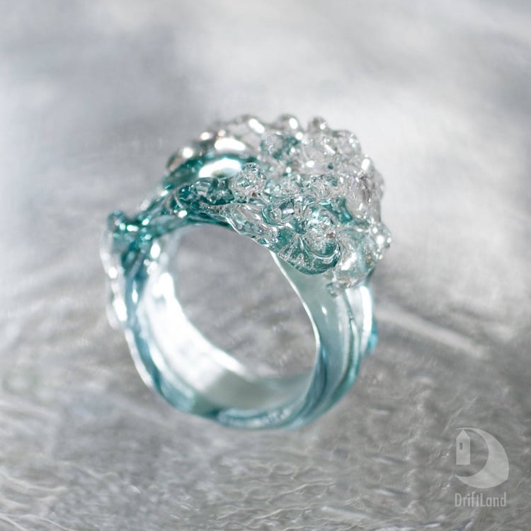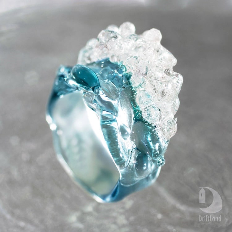 Takı tasarımcıları Lada Tazetdinova ve Ekaterina Kotova, okyanus dalgalarından esinlenen yüzük, kolye, küpe ve bilezikler tasarladı. Açık ve mavi cam ile el yapımı olan takılar, serbest biçimli şekil, tavlama denilen bir işlem kullanılarak üretildi.
