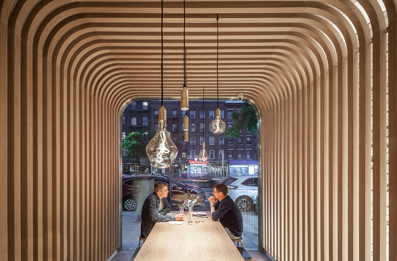 New York’ta Ahşap Çıtalı Tasarımıyla Bir Kafe; ‘Hunan Slurp’