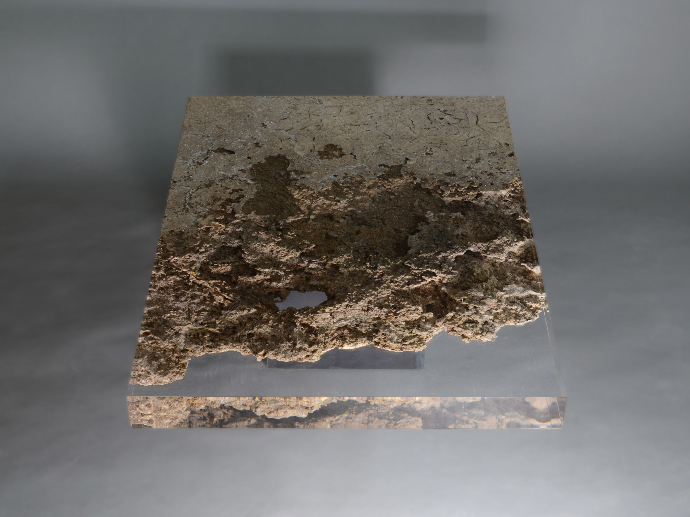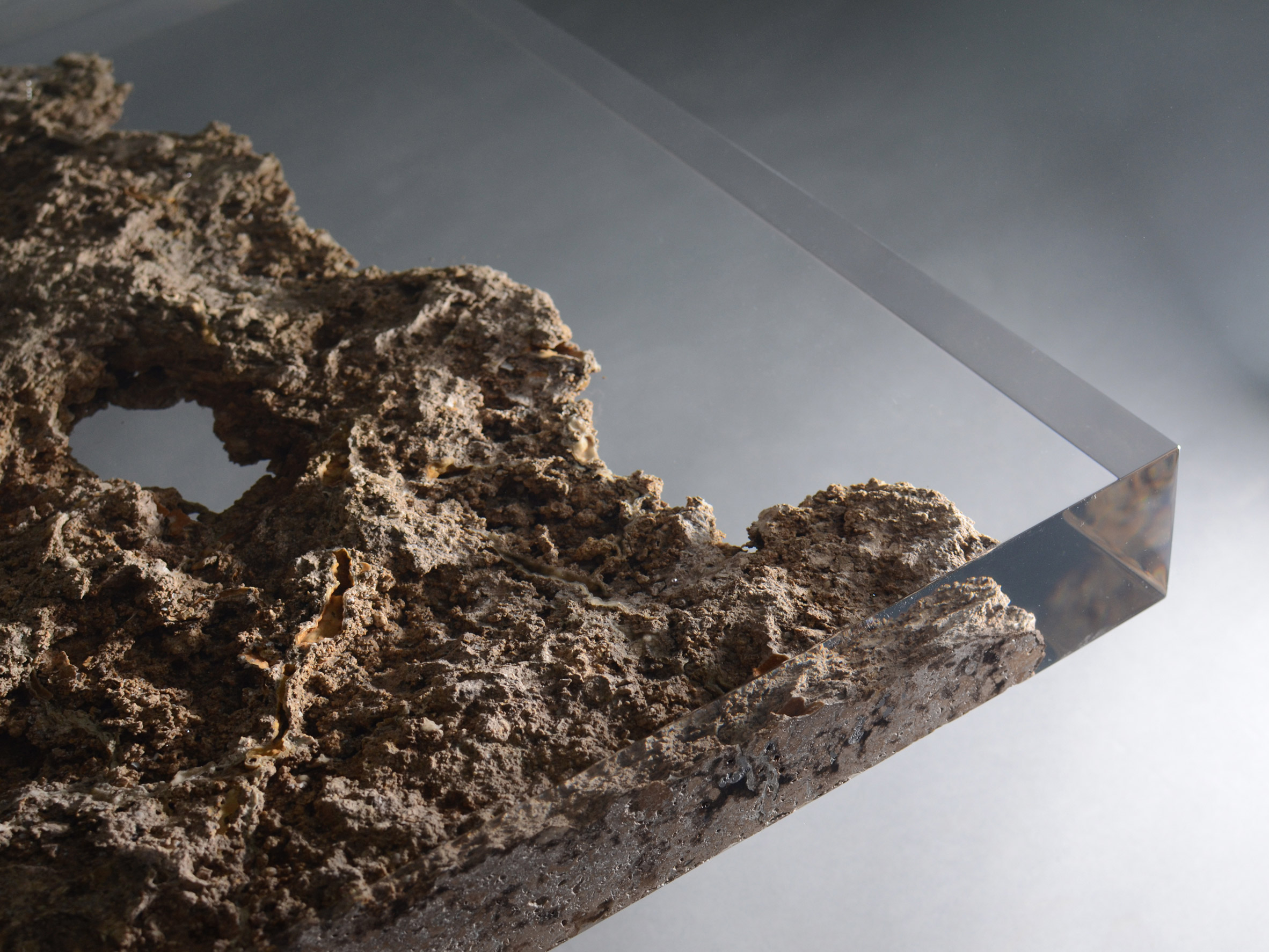 İtalyan tasarım stüdyosu Alcarol, Toskana taş şirketi Vaselli ile birlikte, reçine kaplı erozyona uğramış travertenden yapılmış bir masa ve tabureler oluşturmak için bir araya geldi. Milano tasarım haftası boyunca Nicola Gallizia tarafından küratörlüğünü yaptığı bir mobilya galeri olan BSPK'da, masa ve tabureler, yüzyıllardır Toskana'da Siena yakınlarında taşınılan bir tür tortul kaya olan Rapolano travertenden yapılmıştır.