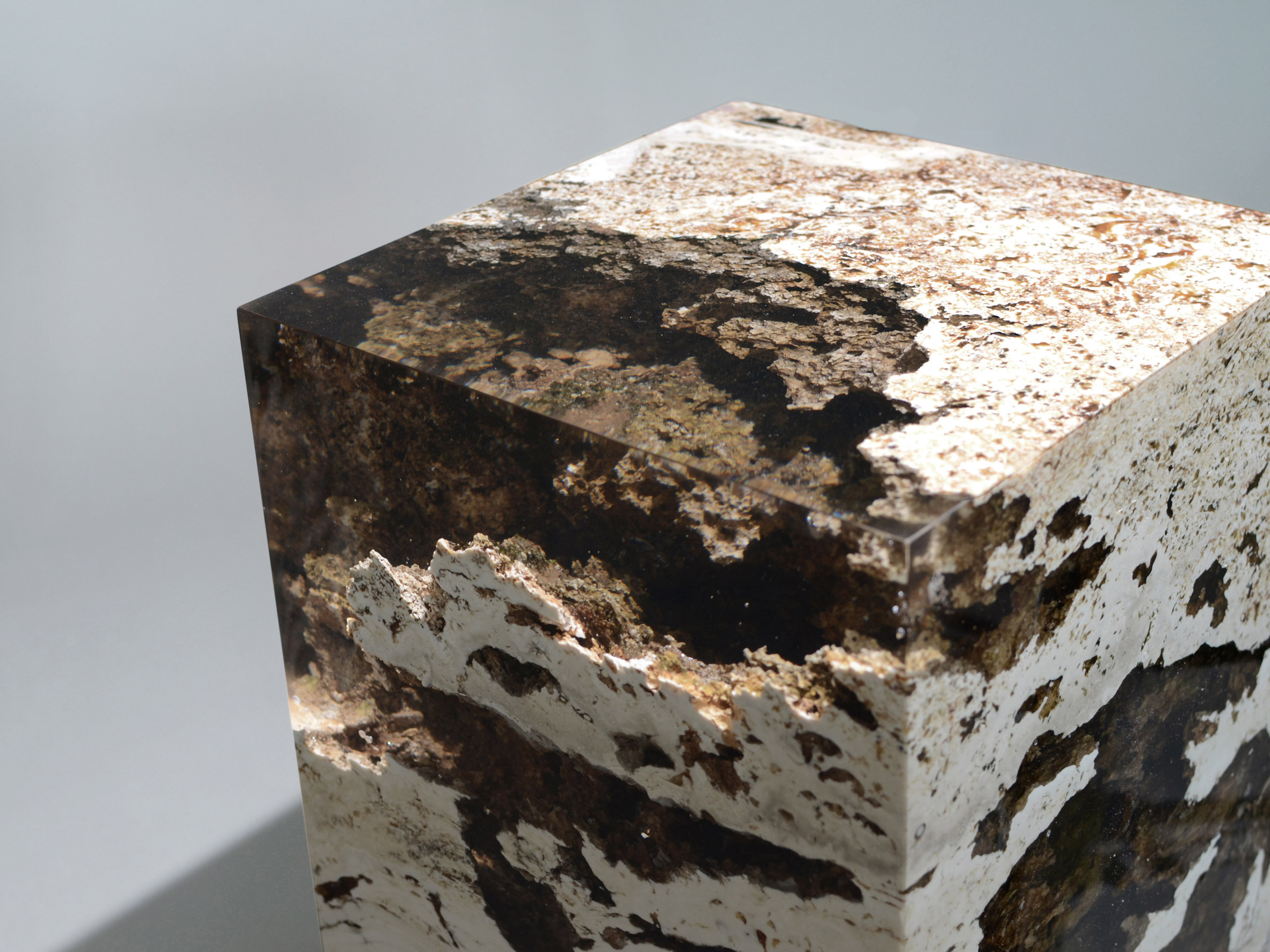 Alcarol ve Vaselli, aşınmış traverten taşının bloklarını aldı ve şeffaf reçine döktüler. Taşın oyuklarını güçlendiren ve koruyan reçine, daha sonra mükemmel açılı bloklar ve plakalar oluşturmak için cilalandı.