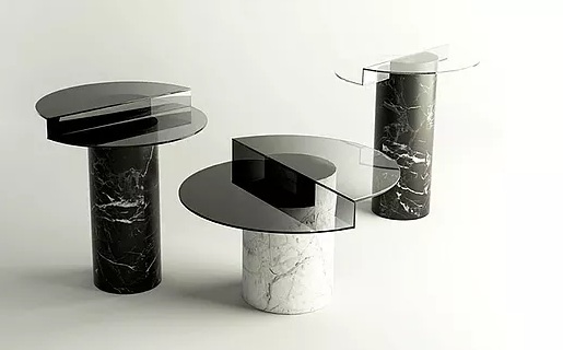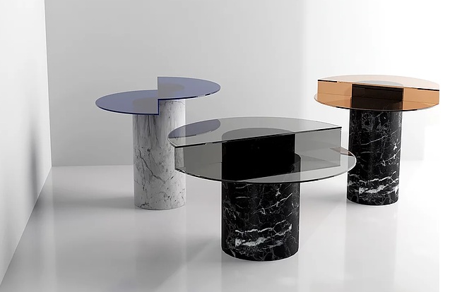"Moon", farklı seviyeler ve dokular arasındaki çeşitliliği vurgulayan bir kahve sehpası serisi tasarımı.