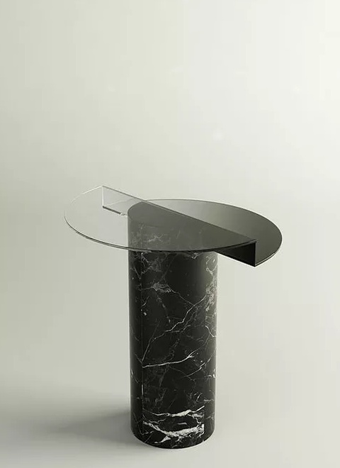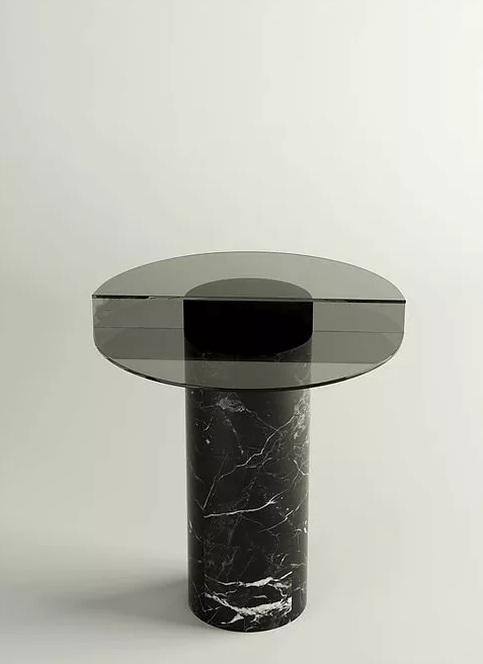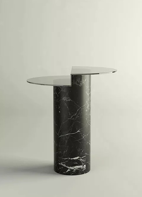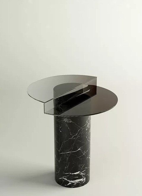 Aydan ilham alınarak tasarlanan iyi tanımlanmış basit geometrik şekillerle ürün, birbirine zıt materyallerin birleşimiyle minimalist ve çağdaş bir görünüm sergiliyor. Mermer ve cam, iddiasız lüks bir atmosfer yaratmak için ağır ve hafif arasında birlik sağlıyor.