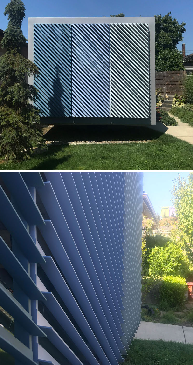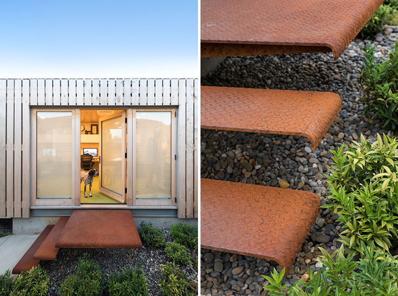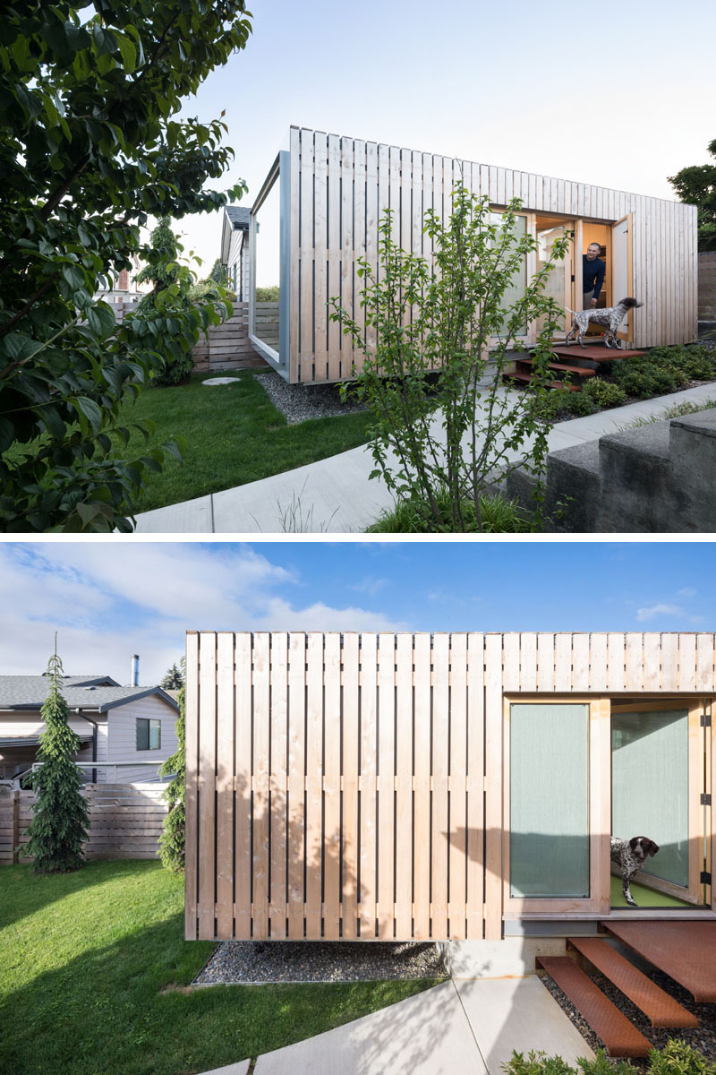 “Amaç, çalışanlar için bağımsız bir alan, müşterilerle ve müteahhitlerle toplantılar yürütmek için bir yer ve işimizi yapmak için daha fazla alana sahip olmaktı.” diyen Randy, bunu göz önünde bulundurarak, birkaç inşaat seçeneğine bakmış ve büyük bir çelik nakliye konteynerine yerleşmeye karar vermiş. Nakliye konteyneri, 40 metre uzunluğunda, 11.5 metre genişliğinde ve 9,5 metre yüksekliğinde ve oldukça dayanıklı çelik konstrüksiyona sahip. Konteyner, tedarikçinin fabrikasında % 95 tamamlandıktan sonra yerine montelenmiş. Nakliye konteyneri bir şehir gereksinimi olan sarı sedir ağacı kaplı. Zamanla doğal sedir griye dönüşecek. Ofisin iç kısmı bir sıcaklık hissi yaratmak için huş ağacından esnek bir çalışma alanı sağlayan bir duvar boyunca uzanan bir masa barındırıyor. Kendi kendine yeten ofis ayrıca bir mini mutfak, tuvalet, yazıcı / ağ dolabı ve açık bir stüdyo alanı içeriyor.