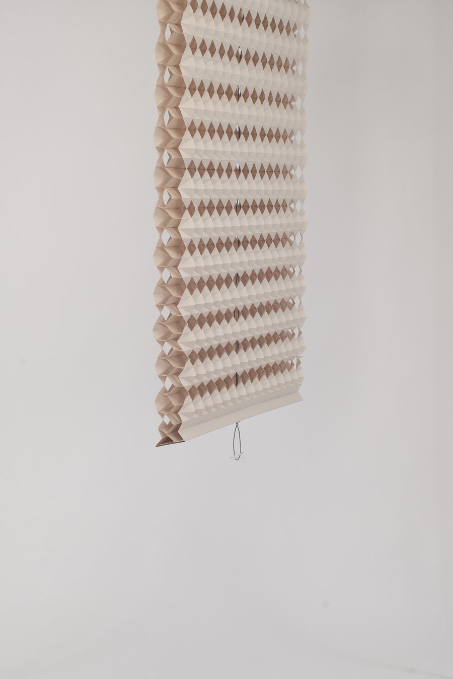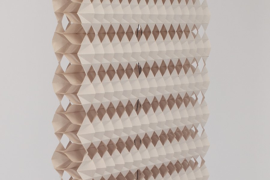 Tayland doğumlu ve Londra merkezli tasarımcı Natchar Sawatdichai, ev eşyalarının üretimi için kağıt gibi sürdürülebilir olanları kullanıyor. Boyutlu desenlere kağıt kesme ve katlamayla şekil veren Sawatdichai, panjurları üç basit elemandan oluşan özelleştirilebilir bıçaklarla oluşturur.