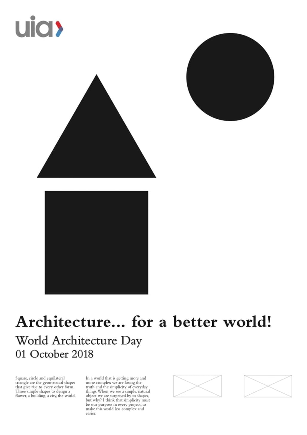 Uluslararası Mimarlar Birliği (UIA), bugün (1 Ekim 2018) kutlanacak olan Dünya Mimarlık Günü için “Architecture… for a Better World” temasını seçti. Her ekim ayının ilk pazartesi günü kutlanan Dünya Mimarlık Günü için bu yıl ilk kez UIA, UIA 2018 Dünya Mimarlık Günü posteri tasarımı için uluslararası bir yarışma düzenledi. Her yıl farklı bir tema seçerek, şehirler ve konutlarla ilgili konulara profesyonellerle halkın dikkatini çekmeyi hedefliyor.