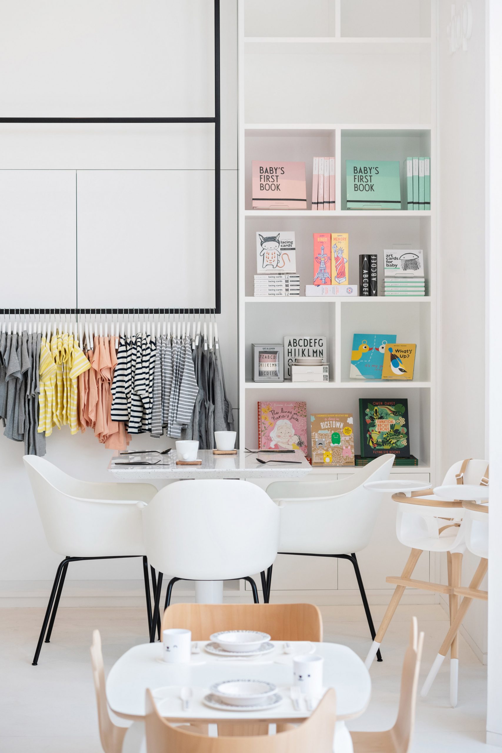 Dubai’nin Jumeirah bölgesinde yer alan White & The Bear, Sneha Divias Atelier tarafından genellikle çocuk odaklı alanlarda kullanılan parlak tonlardan kaçınan iç mekanlar ile tasarlanmıştır. Restoran ve perakende alanı, stüdyoya göre çocukların merakını artıracak nötr renkler ve malzemelerle süslenmiştir.